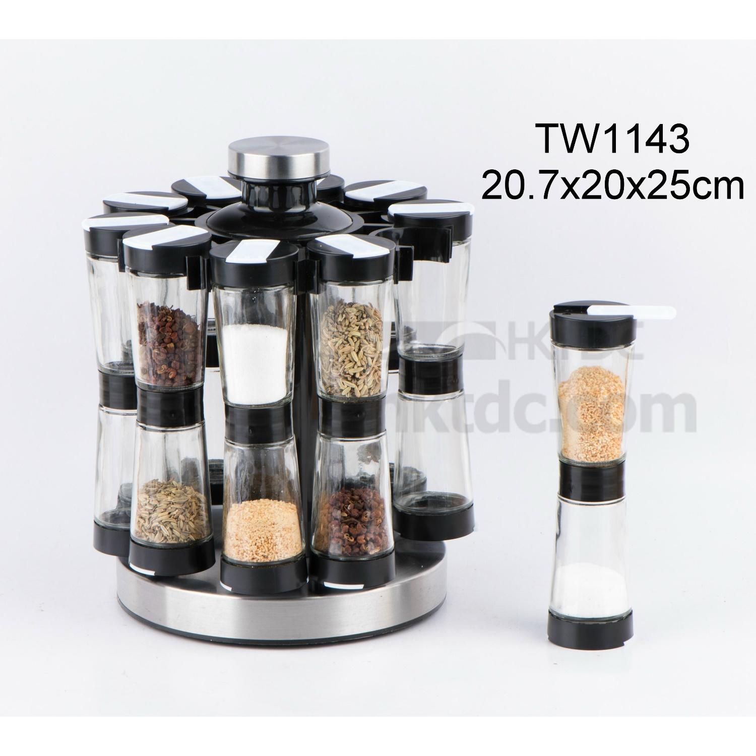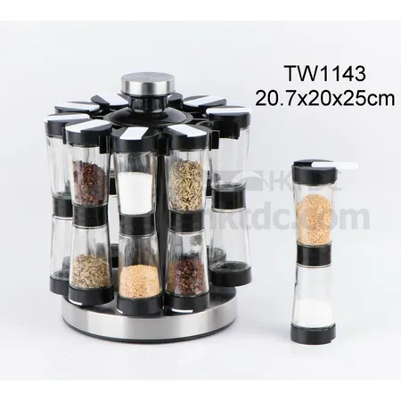 Description:10pcs glass spice jar set with plastic lid and revolving rack