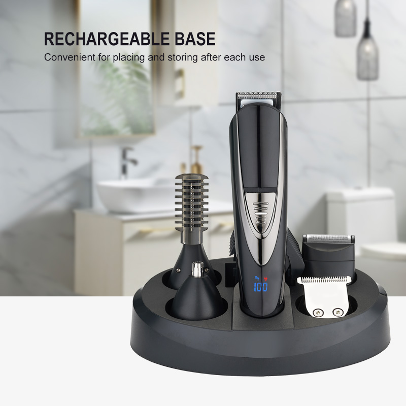 Satisfy all your grooming needs from shaving beard to trimming other body hairs with this12-in-1 grooming kit. It includes five trimmers including a full size trimmer, a precision trimmer, a micro shaver,a body trimmer and a nose trimmer. This amazing set helps you to keep a refreshing and handsome look every day and makes a must-have item for men to be put in the bathroom.
