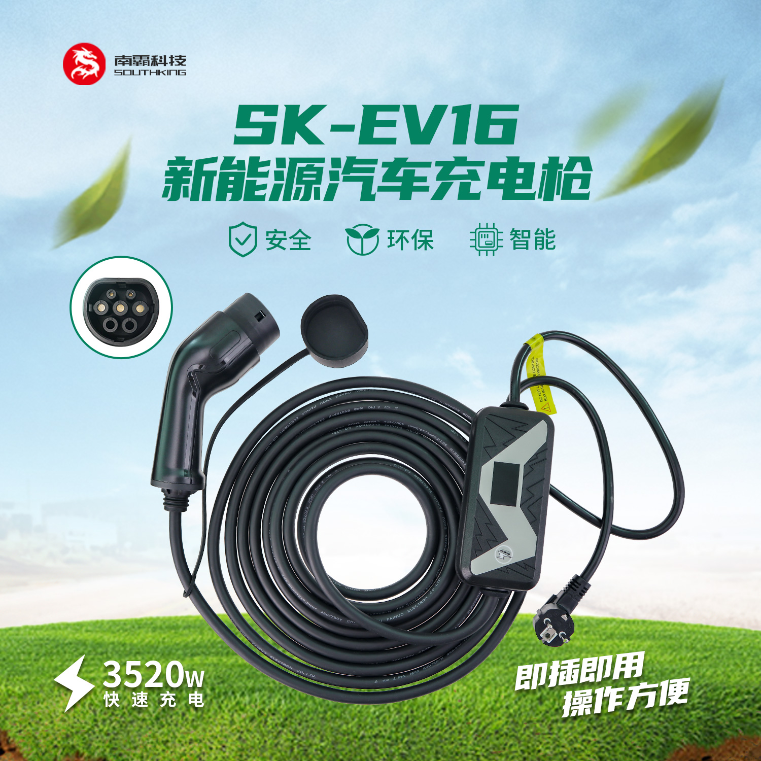 Model: SK-EV16 Current: 16A (10A.13A.20A.32A adjustable) Cable length: 7.6 meters. 5 meters or customized length Input voltage: 185-265V Output voltage: 185-265V Specifications: American regulations. British regulations. Chinese regulations LED: Real-time display of temperature, charging time and real-time charging current