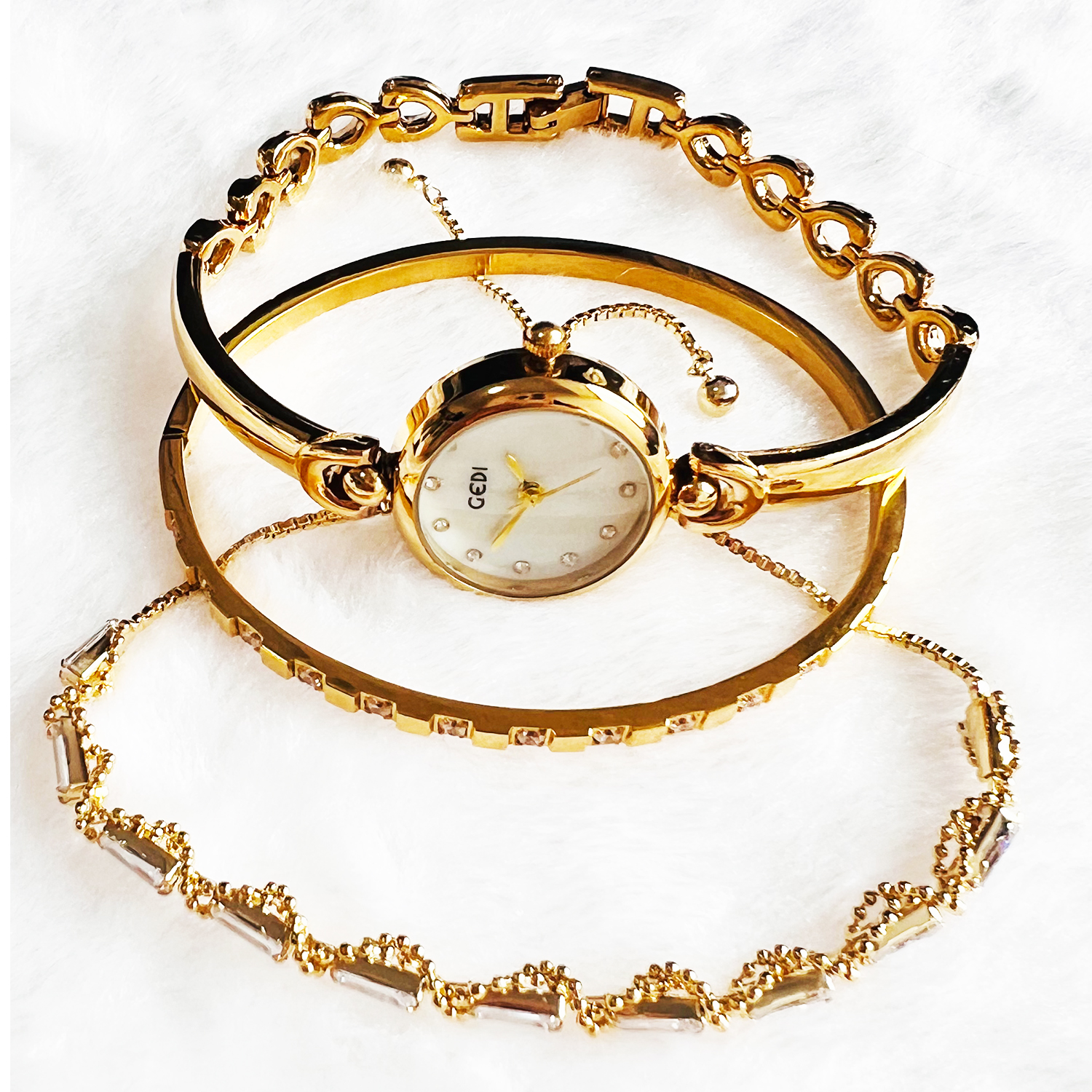 Highlighted here is a set of Ladies fashion Watch with an alloy Case & Band and Stainless Steel Jewelry with good long lasting plating. Different models and colors of bracelet & bangle jewelry are available. Feel free to change the combination of the Gift set from our collection in your respective orders.