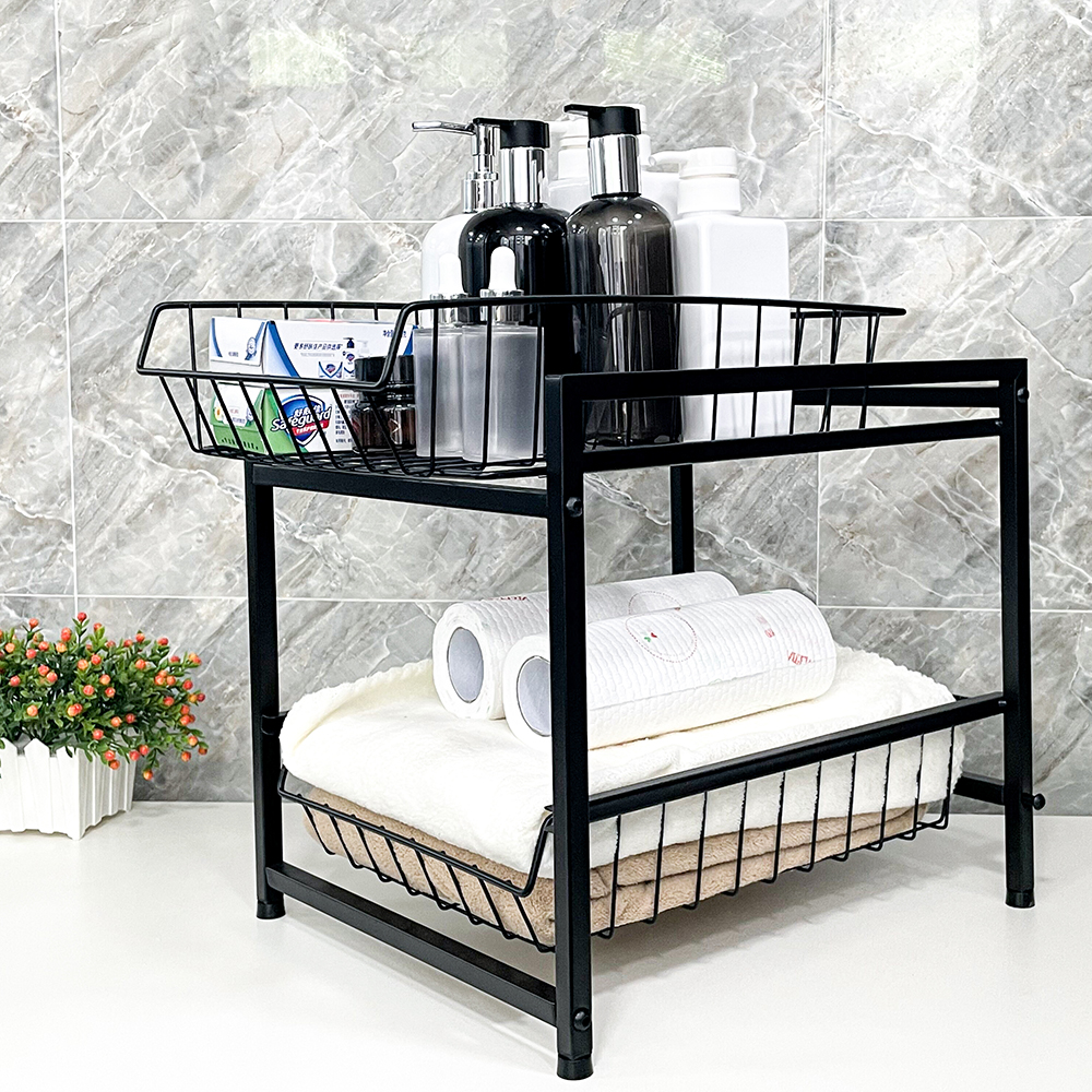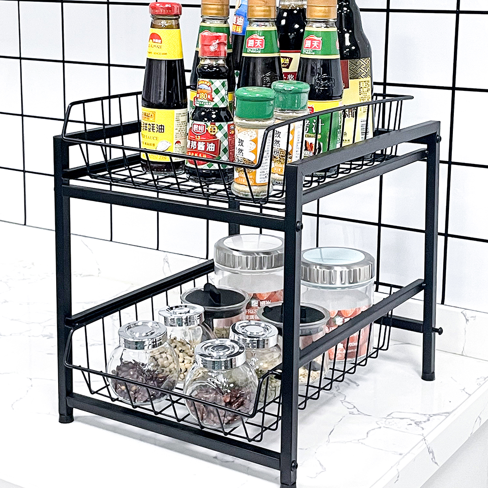 Smooth Slide-Out Design: Both top and bottom baskets feature smooth gliding tracks, ensuring easy access to items stored deep inside cabinets.