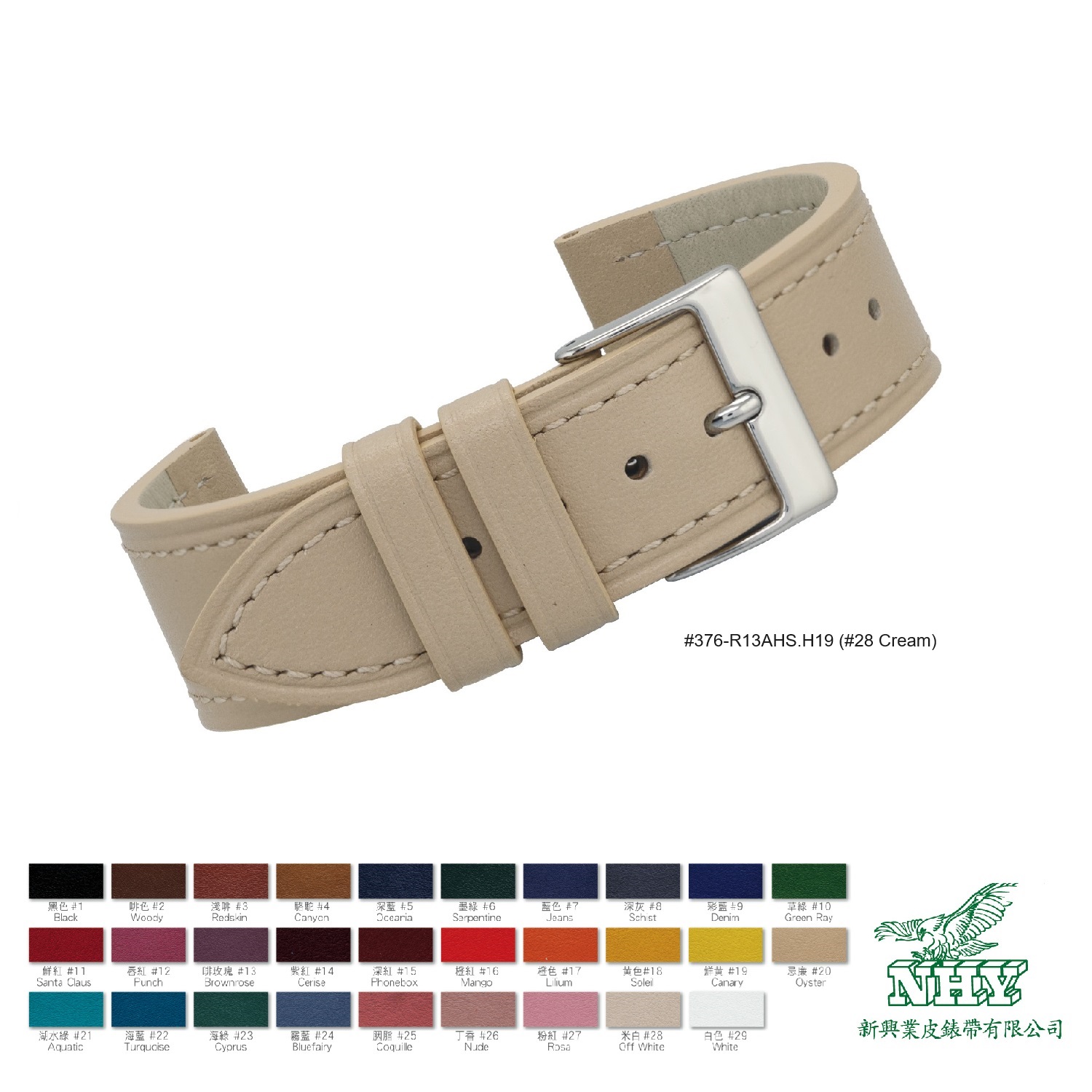This fashionable strap is produced with Italian grain leather. 29 colors are available in stock.