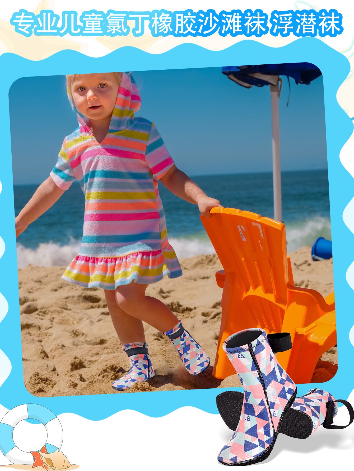 3mm neoprene kids diving socks, kids beach socks, neoprene kids water shoes, 3mm kids wetsuit socks, children snorkeling socks, toddler thermal water boots, kids anti-slip diving socks, kids neoprene sand socks, children swimming socks, kids surf socks