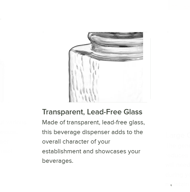 This 5 gallon dispenser is great for serving and displaying chilled, thirst-quenching water or tea flavored with colorful lemons, limes, or cucumbers, creating an attractive display that is sure to draw your guests' attention.