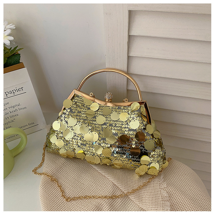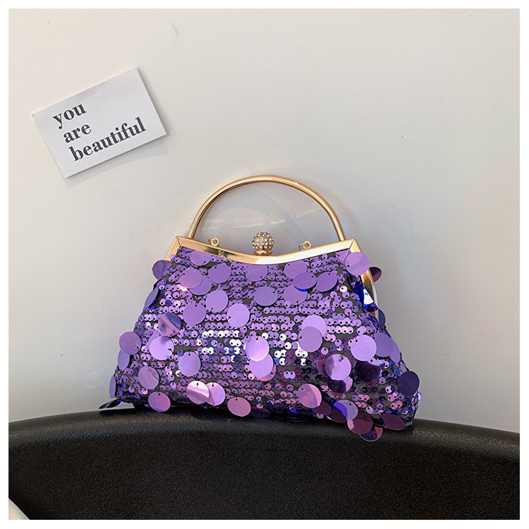 Luxurious shiny sequin evening bag designed for fashion brands targeting premium nightwear markets.