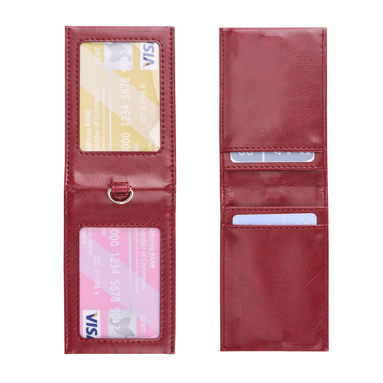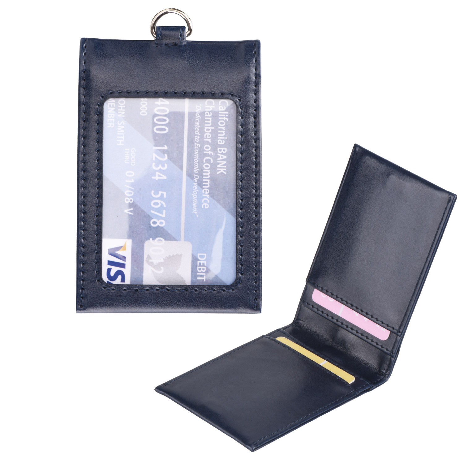 Business Badge Leather Bank Credit Card Holder Multi Slot Slim Minimalist Wallet Lanyard
