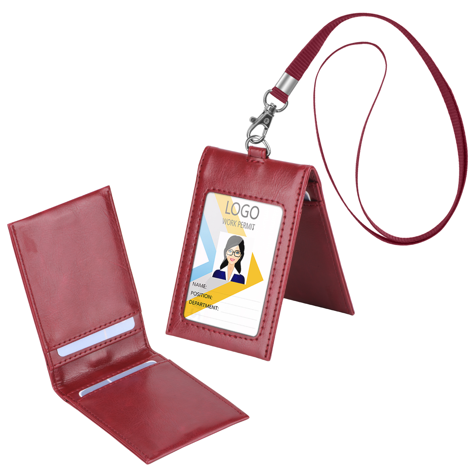 • Clear Window: Features a clear vinyl window that securely displays your ID card or badge without obscuring any information.