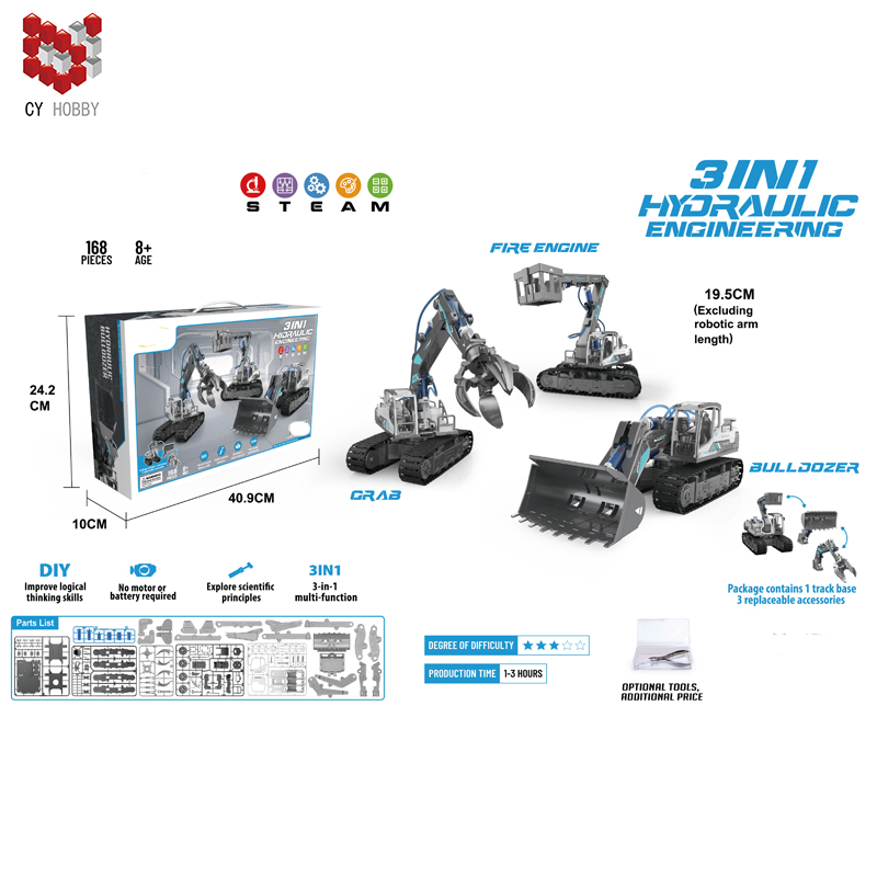 | Self-assembled STEAM toys: 168 accessories.No battery or motor needed.All it takes is water to drive the arm.Hydraulic power principle | |||