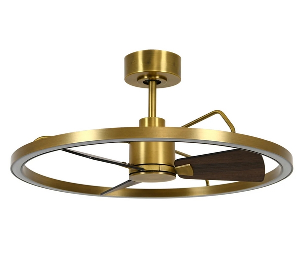 Available in antique brass with walnut blades, or nickel with teak blades.