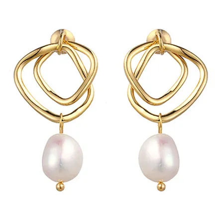Charm Imitation Pearl Golden Plated Alloy Parts Drop Earring