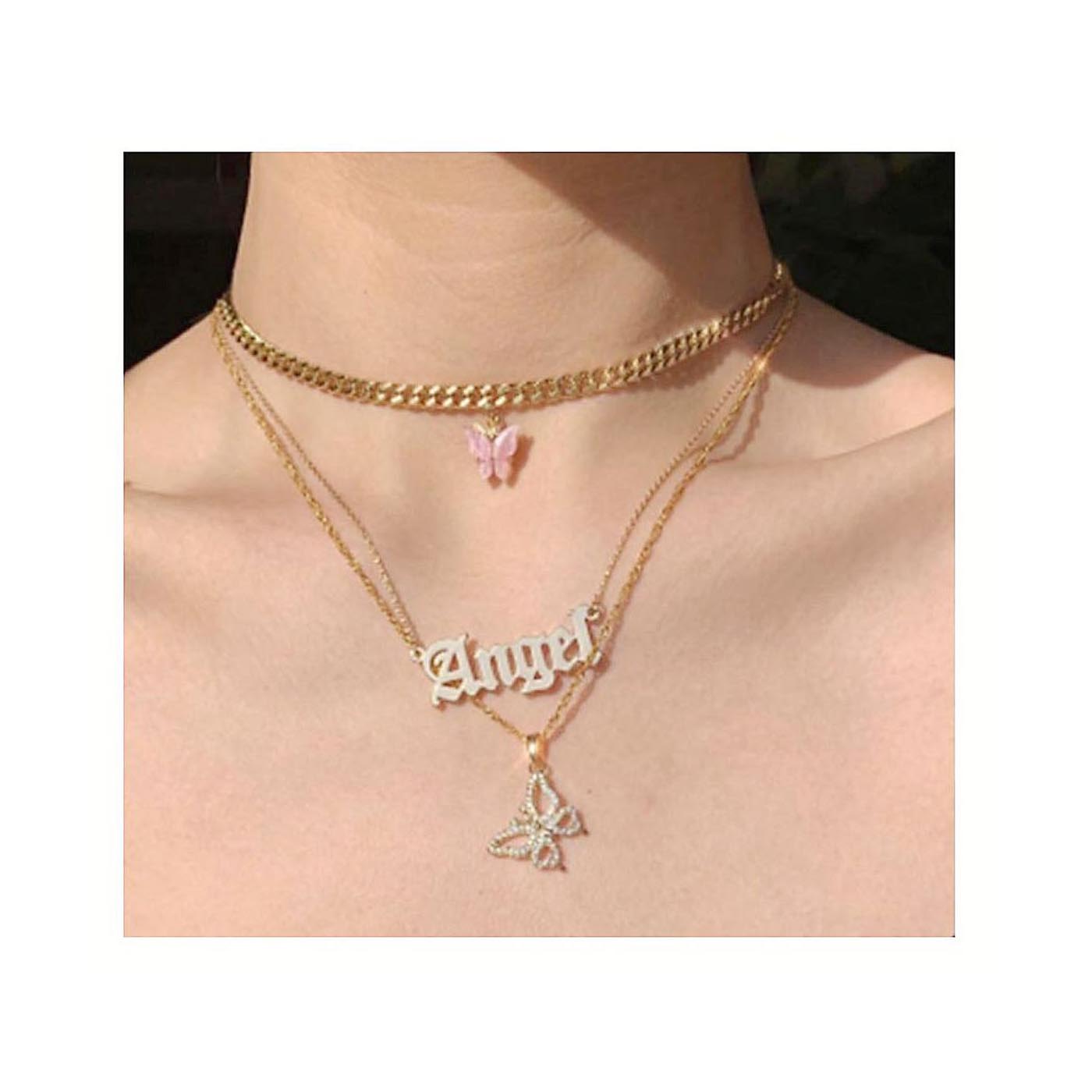 Charm Multi Strand Alloy Butterfly Pendant Chains Necklace