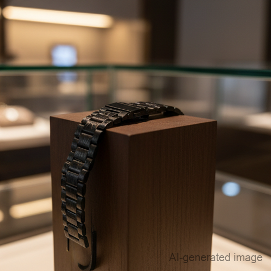 Add a touch of elegance to your timepiece with this premium black stainless steel watch strap.