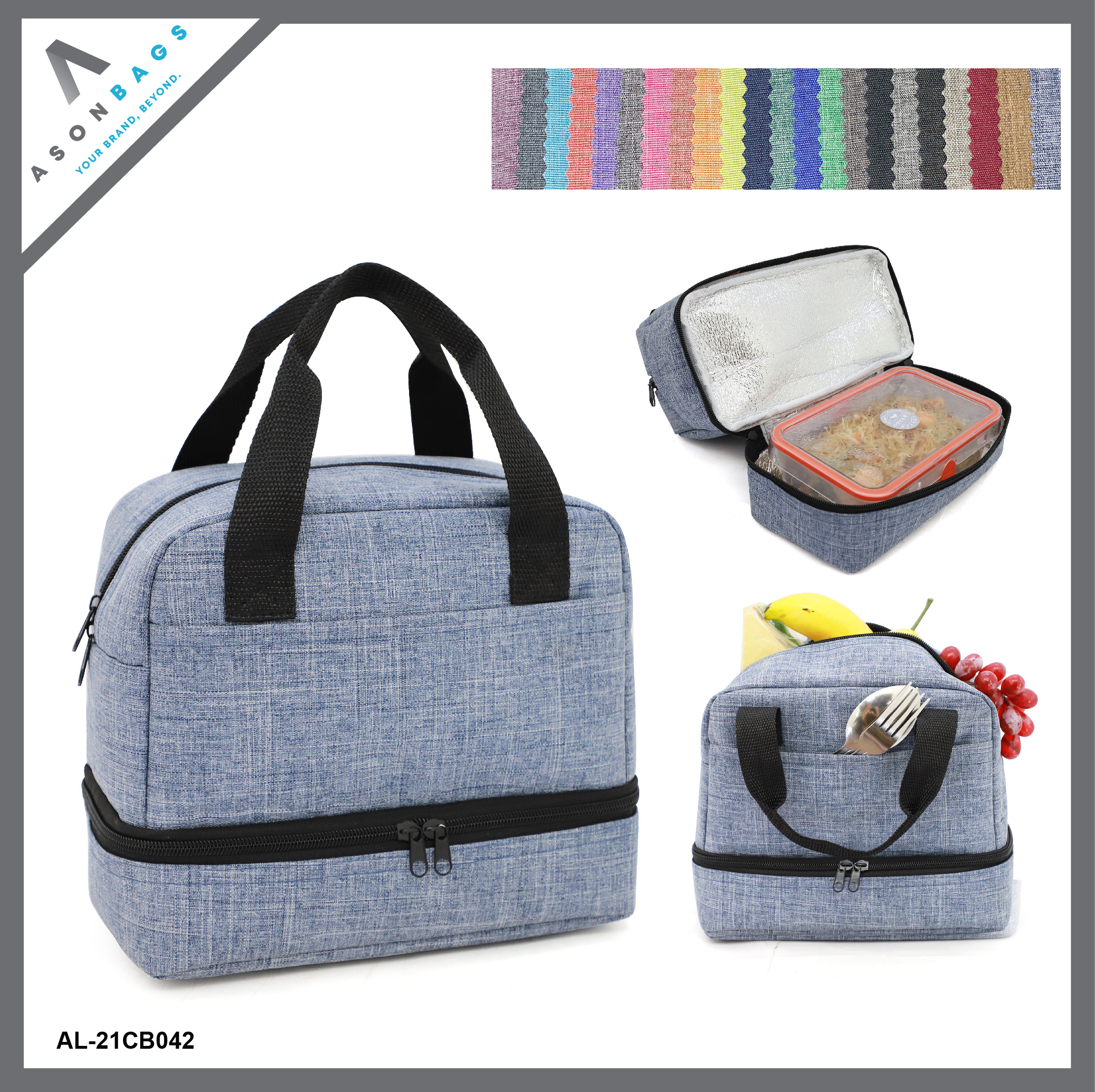 This cooler bag is made of 300 D poly canvas material with Aluminum foil inside, which could keep food temperature.