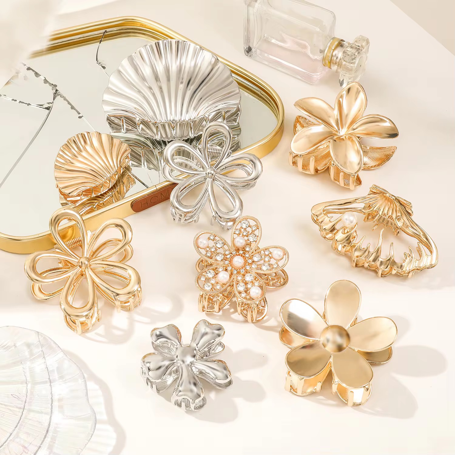 Cross border Metal Egg Flower Hair Clip, Light Luxury Shell Plate Hair Clip, Back of Head Shark Clip Hair Accessories Wholesale