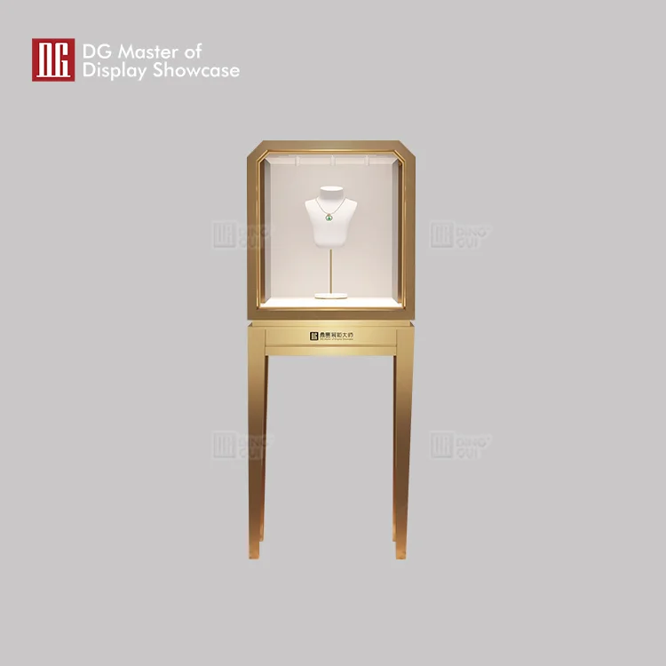 This high-end luxury jewelry upright showcase is the latest from DG display showcase2023. The style is very classic and never goes out of style. The whole jewelry cabinet with brassy appearance design looks very dignified, gorgeous and stable.It is full of high-end feeling. The process of electroplating on the surface of the drawing stainless steel, makes the showcase not easy to deform, and has strong corrosion and impact resistance. The diagonal seamless welding of the cabinet makes the whole look more three-dimensional. Intelligent adjustable lighting system, with uniform light distribution, so that making your products more realistic reduction. It is suitable for you to display a variety of high-end products. We have a professional team.We often insist that integrity is our base and has been unremitting pursuit of high quality on the road. With the heart of a craftsman, meticulous to produce perfect products for customers. If you also like this high-end jewelry showcase, welcome to contact DG Master of display showcase.