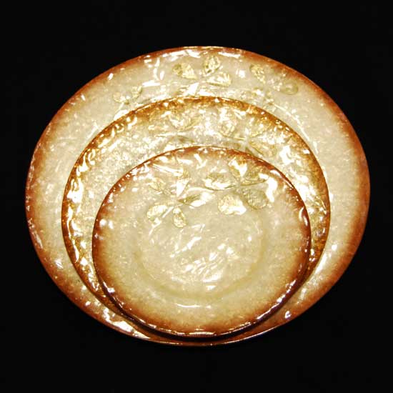 Update your kitchen decor with the featured dish set. Made of Capiz shells, the dishes come with a glossy and pearlish exterior. They are patterned with golden flowers. The dishes are of different sizes.