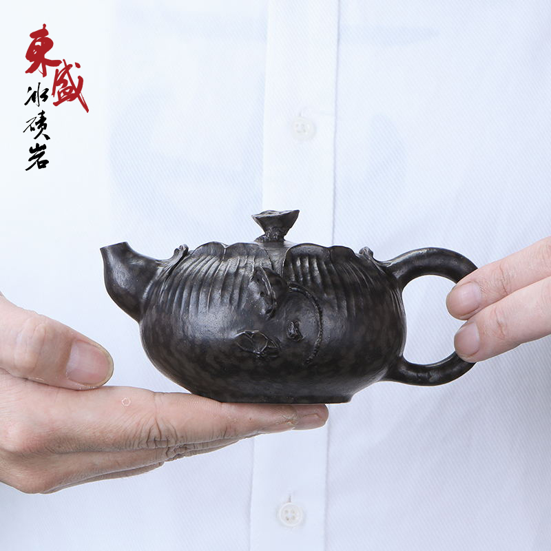 Dongsheng Moraine Pot, Large Diameter Carving, Natural Health Preservation, Fully Handmade Tea Pot, Exquisite Retro Lotus Pot