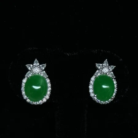 Surrounded by diamonds that glitter like stars, the exquisite cabochon highlights the noble and elegant jadeite. The piece is crowned with a dynamic, flower-shaped accent. Wear it and become the dazzling focus of all eyes.