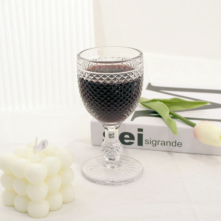 Matte Surface Embossed Long Stem Wine Glass Cup