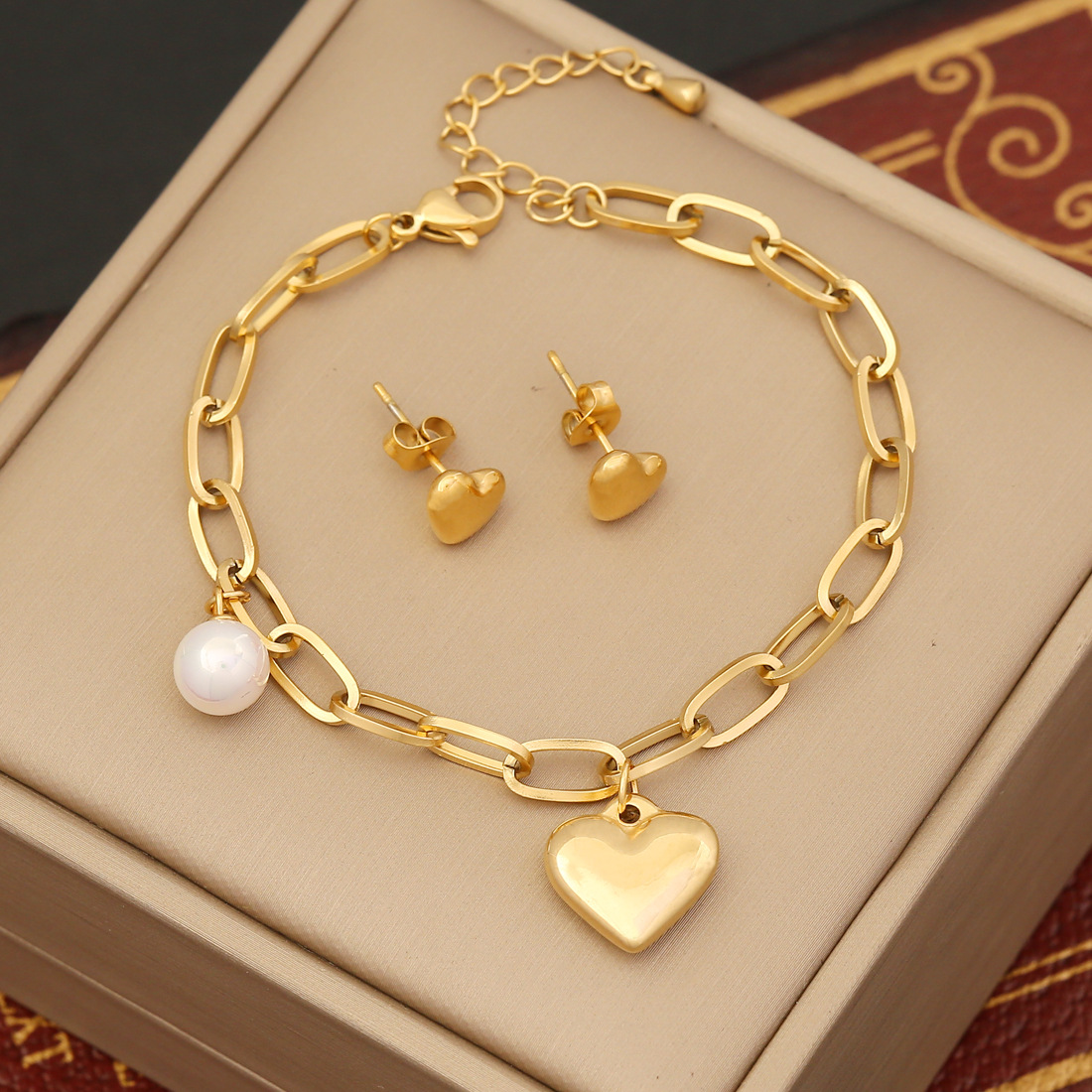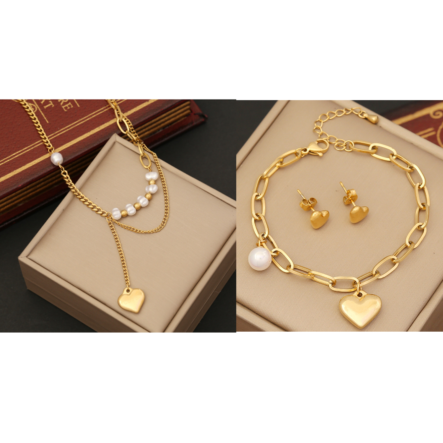 European and American Freshwater Pearl Thick Chain necklace with bracelet earrings Set three Piece Jewelry Sets