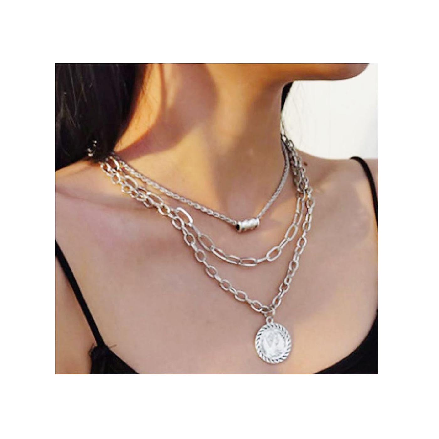 Fashion Alloy Pendant Multi Strand Silver Plated Chains Necklace