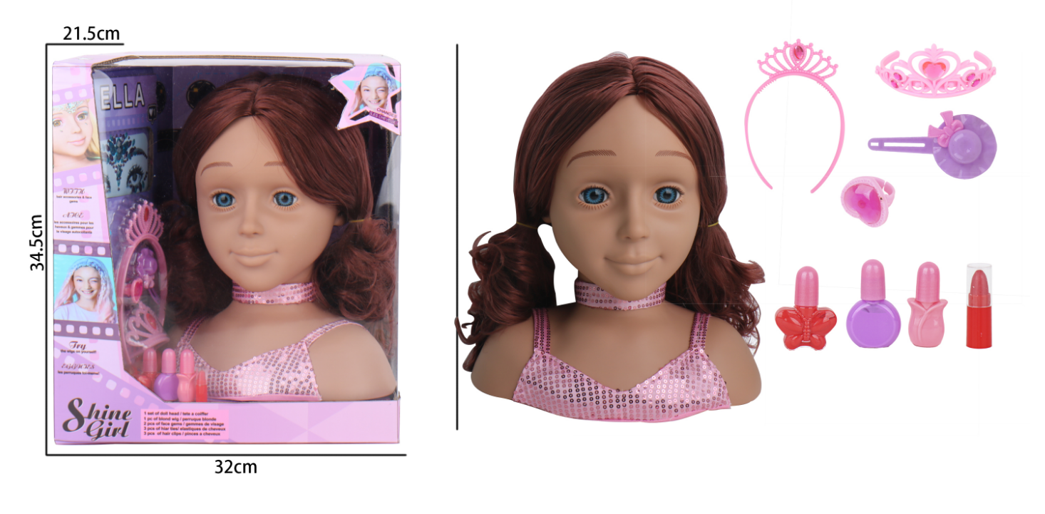 GIRL DOLL HEAD WITH HAIR ACCESSORIES SET ( WE WELCOME OEM )