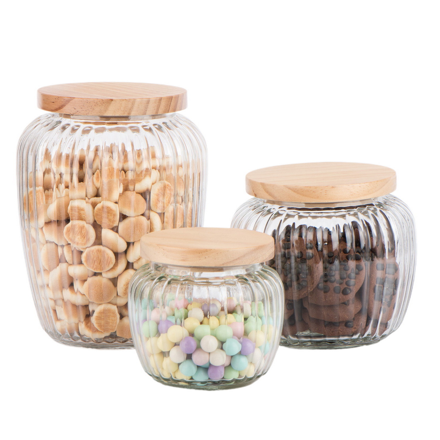 Glass Food Storage Jar with Bamboo Lid with Vertical Lines