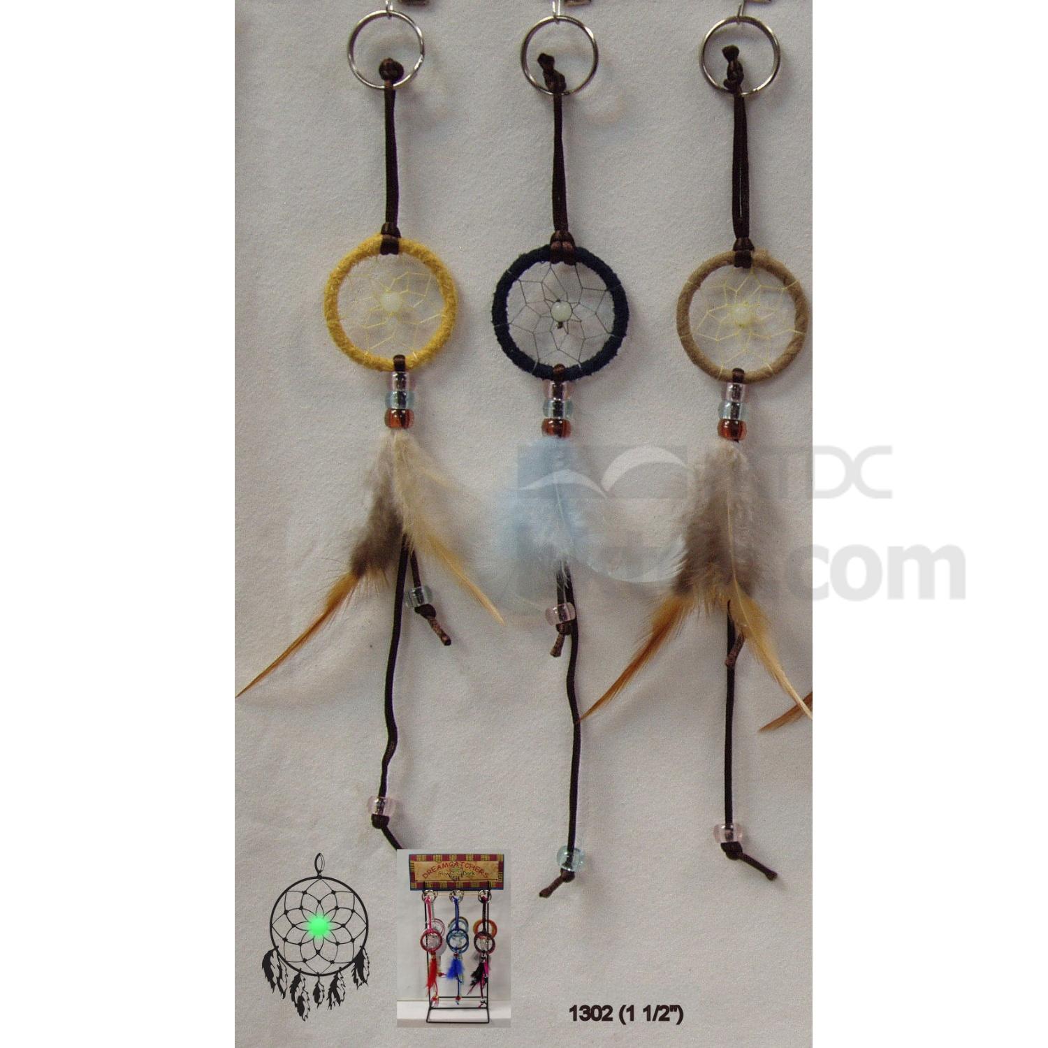 Unique design of dream catcher keyring with "Glow in the dark" bead on the web.
