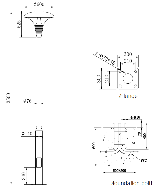 Aluminum alloy lamp head, PMMA lamp shade Painting; Stainless steel /Aluminum alloy/Galvanized steel/Q235 steel Pole