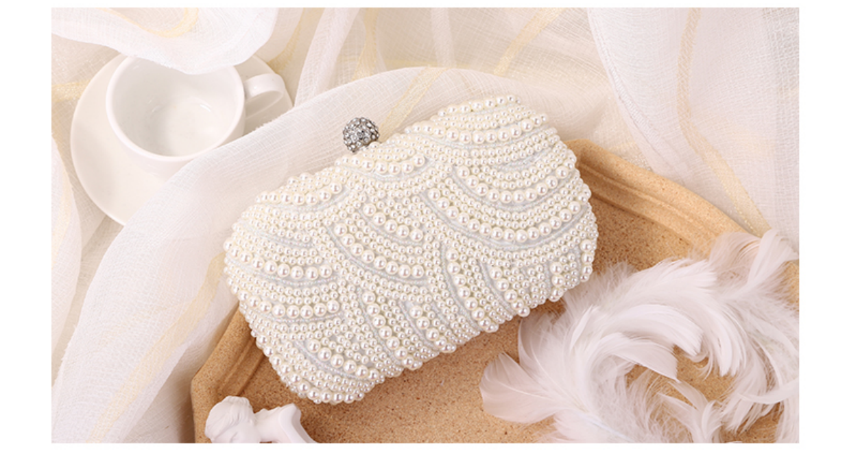 Luxury pearl evening bag designed for fashion brands targeting women's accessories market.