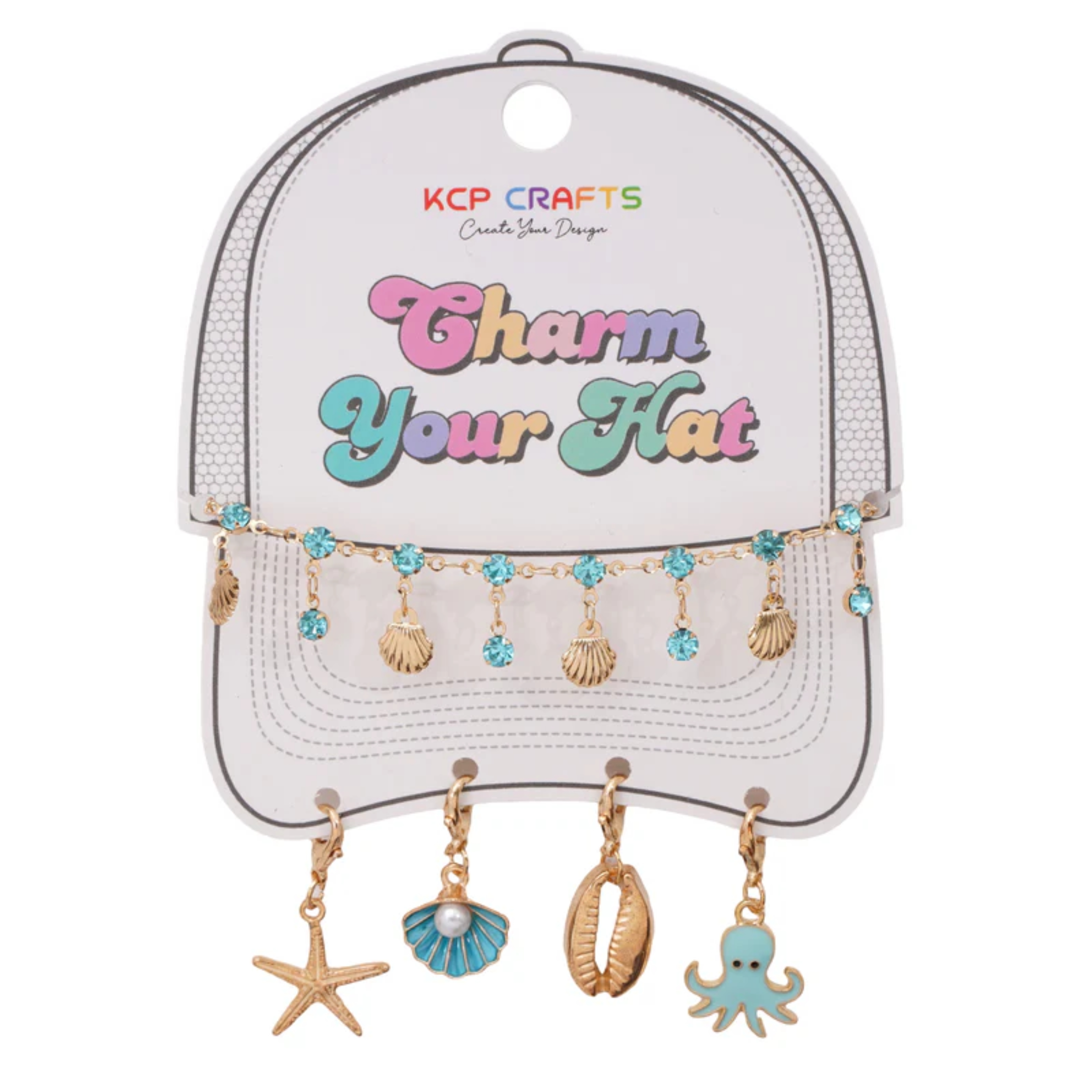 This hat charm kit adds a fresh, beachy coastal vibe to custom headwear with cute marine and shell details.