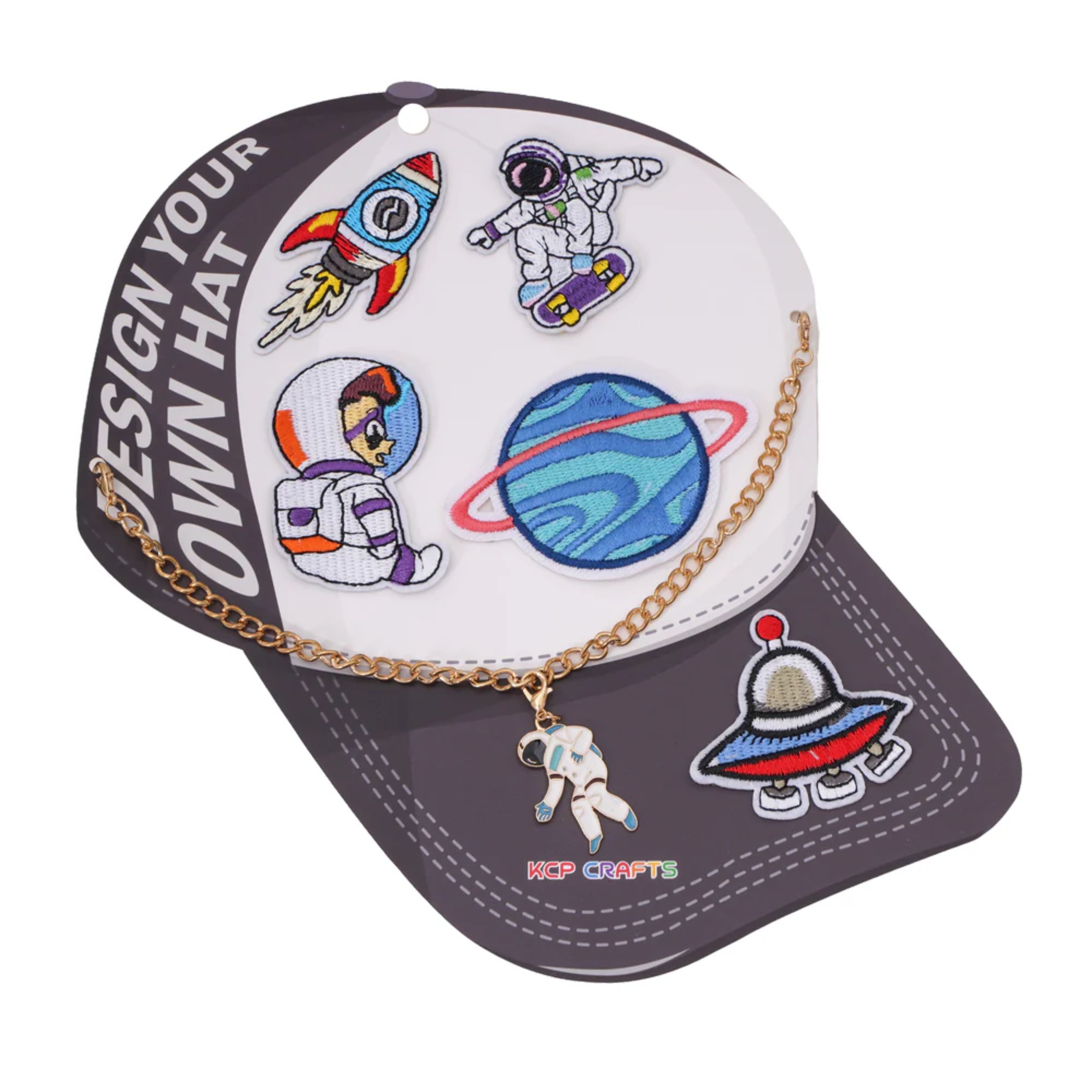 This space themed DIY hat charm set brings a playful, futuristic vibe to custom headwear.