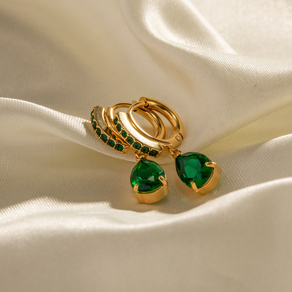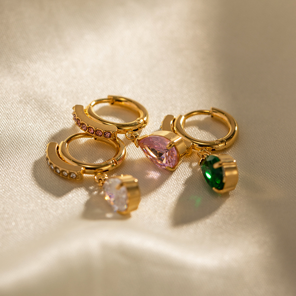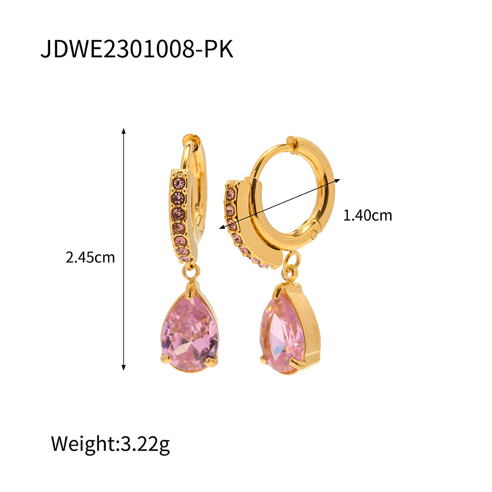 High Quality Stainless Steel Colorful Zircon 18K Gold Plated Stainless Steel Geometric water drop shaped zircon dangle Earrings For Women