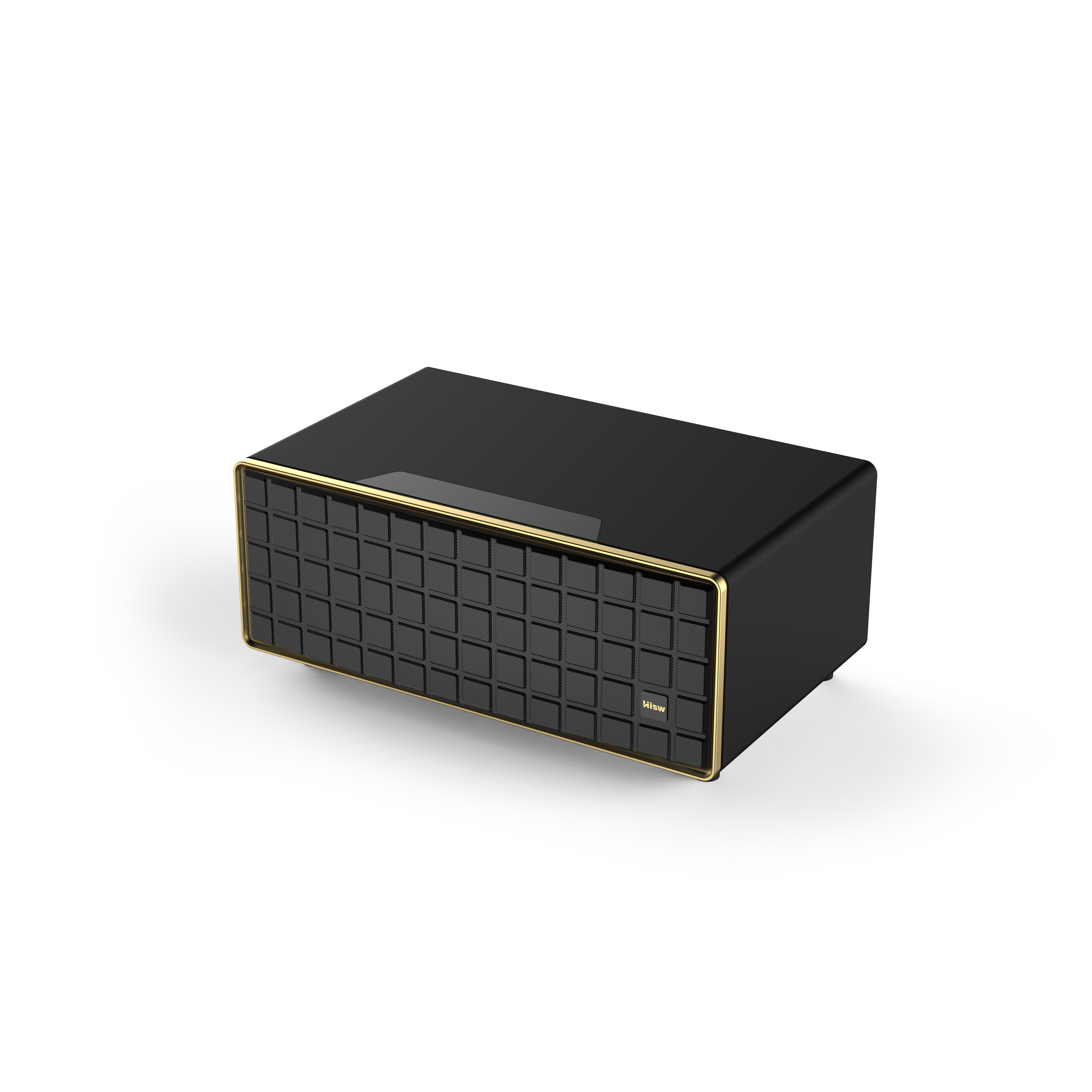 Stereo speaker with a retro design and PU finish, making it perfect for any occasion or setting. The PU finish combined with oxidized metal details achieves an ideal balance between elegance and sophistication.