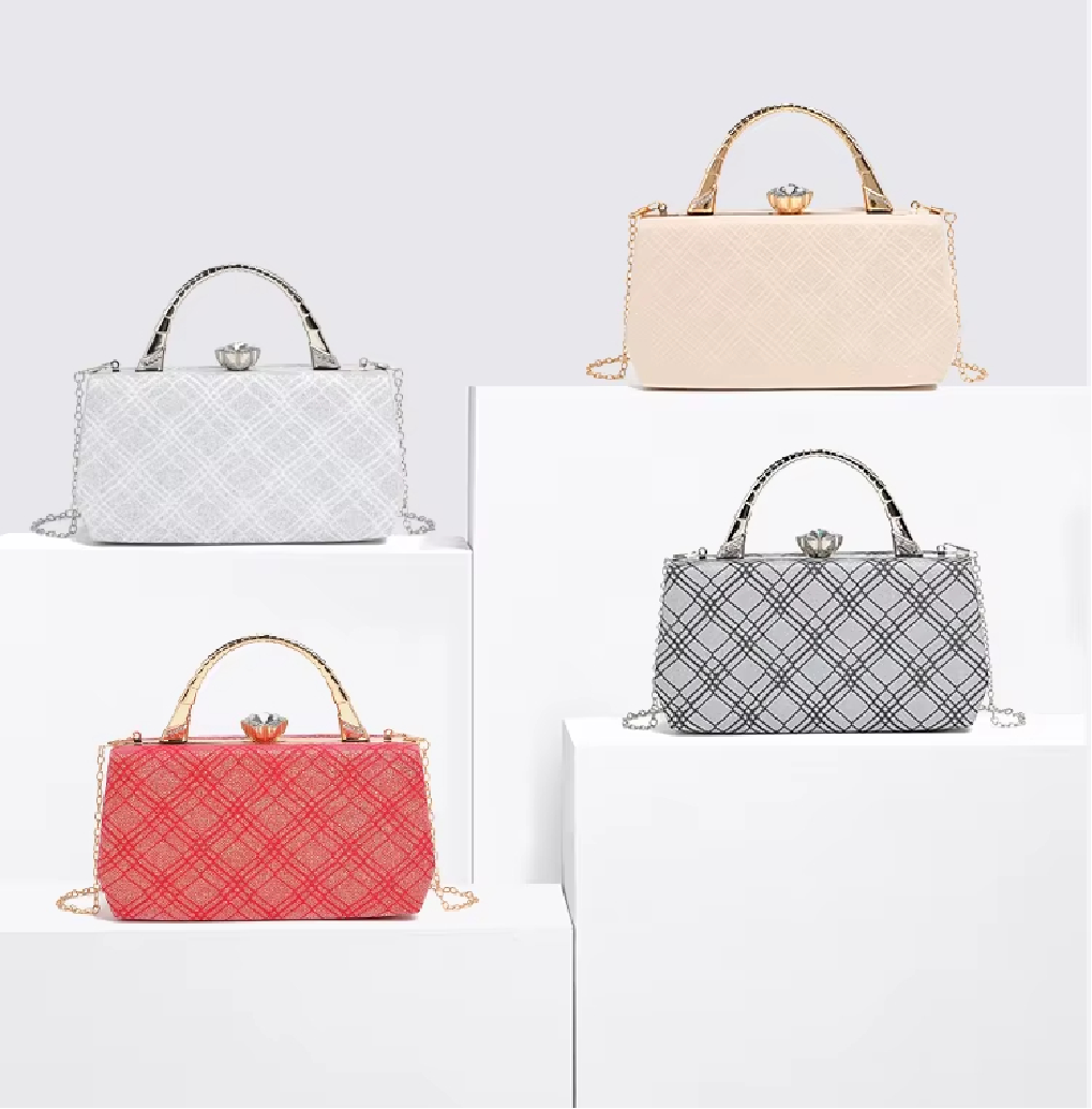 This clutch is made for moments when you want to feel absolutely glamorous. It’s the perfect marriage of retro elegance (the box shape and metal frame) and modern sparkle (the glitter and oversized gem). Whether you choose the warm Champagne to complement a gown or the dazzling Silver for a sharp contrast, this bag is a sophisticated piece that completes any special occasion ensemble and makes you feel like royalty.