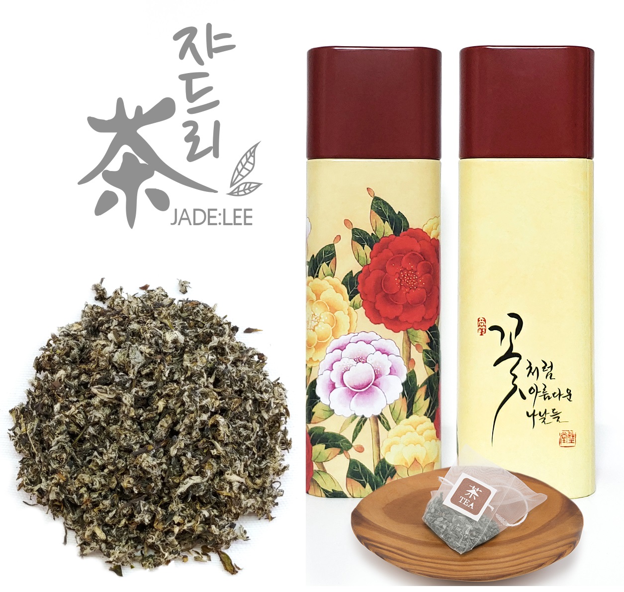 Ssukgungi (wormwood tea) made by Jade Lee uses various processing techniques to make the strong scent and smooth taste, which is not stimulating, but rather subtle and fragrant.