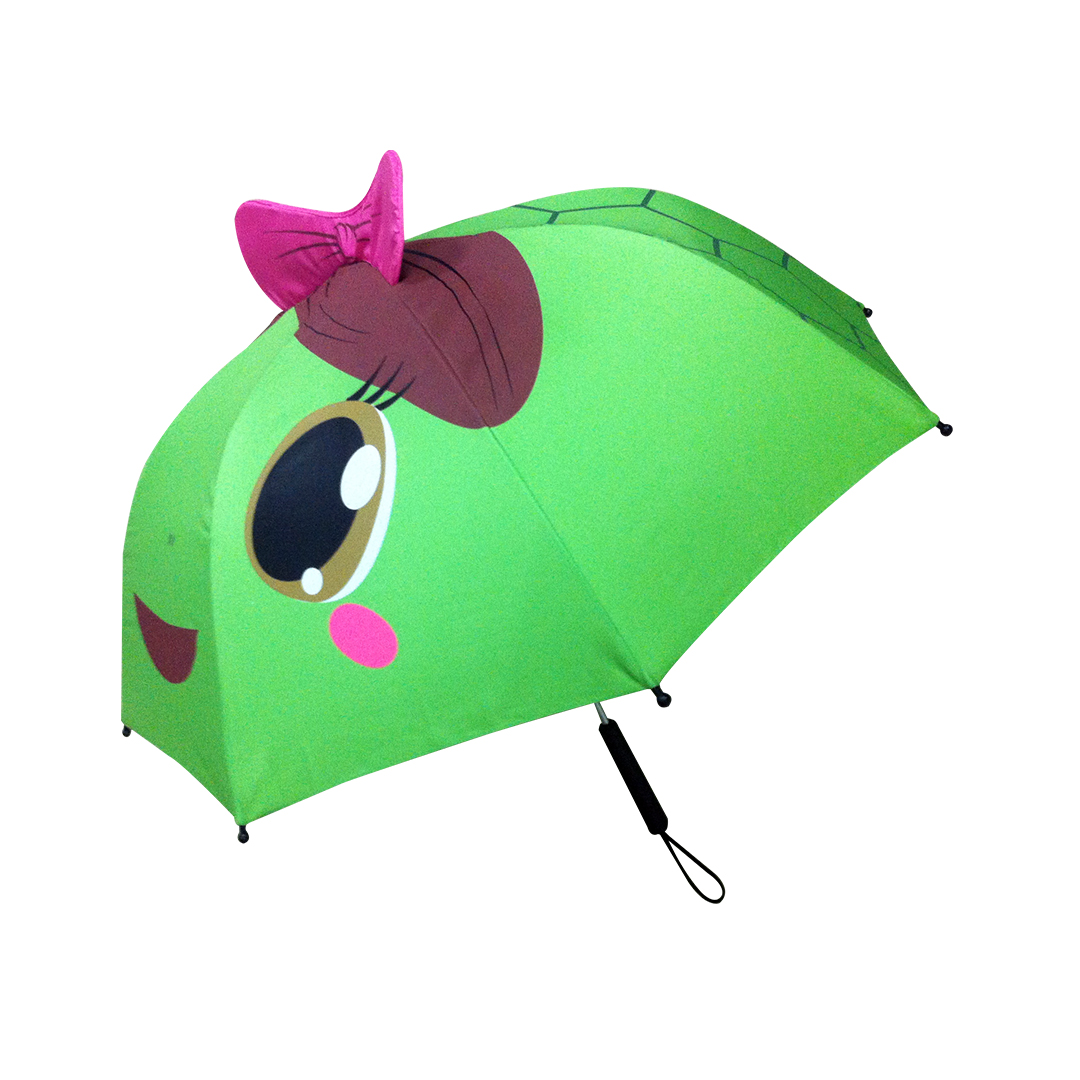 19" Child-sized Frog Umbrella comes with a adhesive strap for quick storage, an easy to use push button closure & safety caps on the tips of the ribs to protect little faces. One size is large enough for big kids & light enough for little kids & toddlers to use.