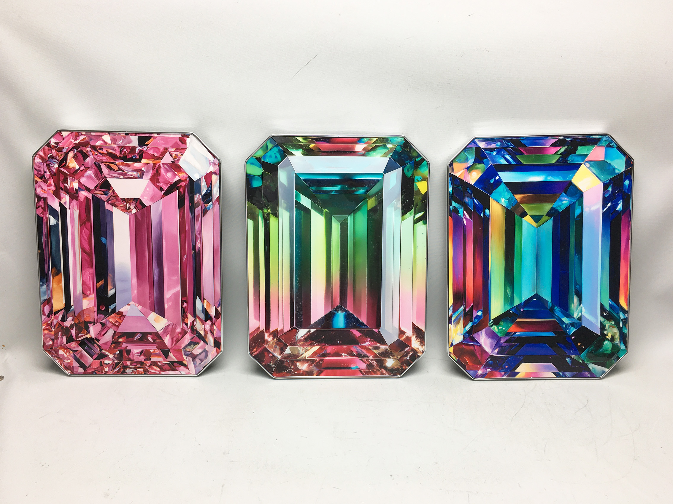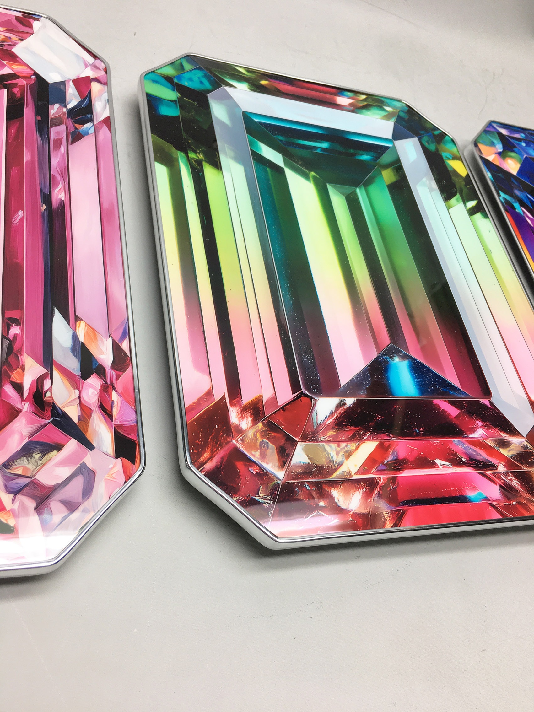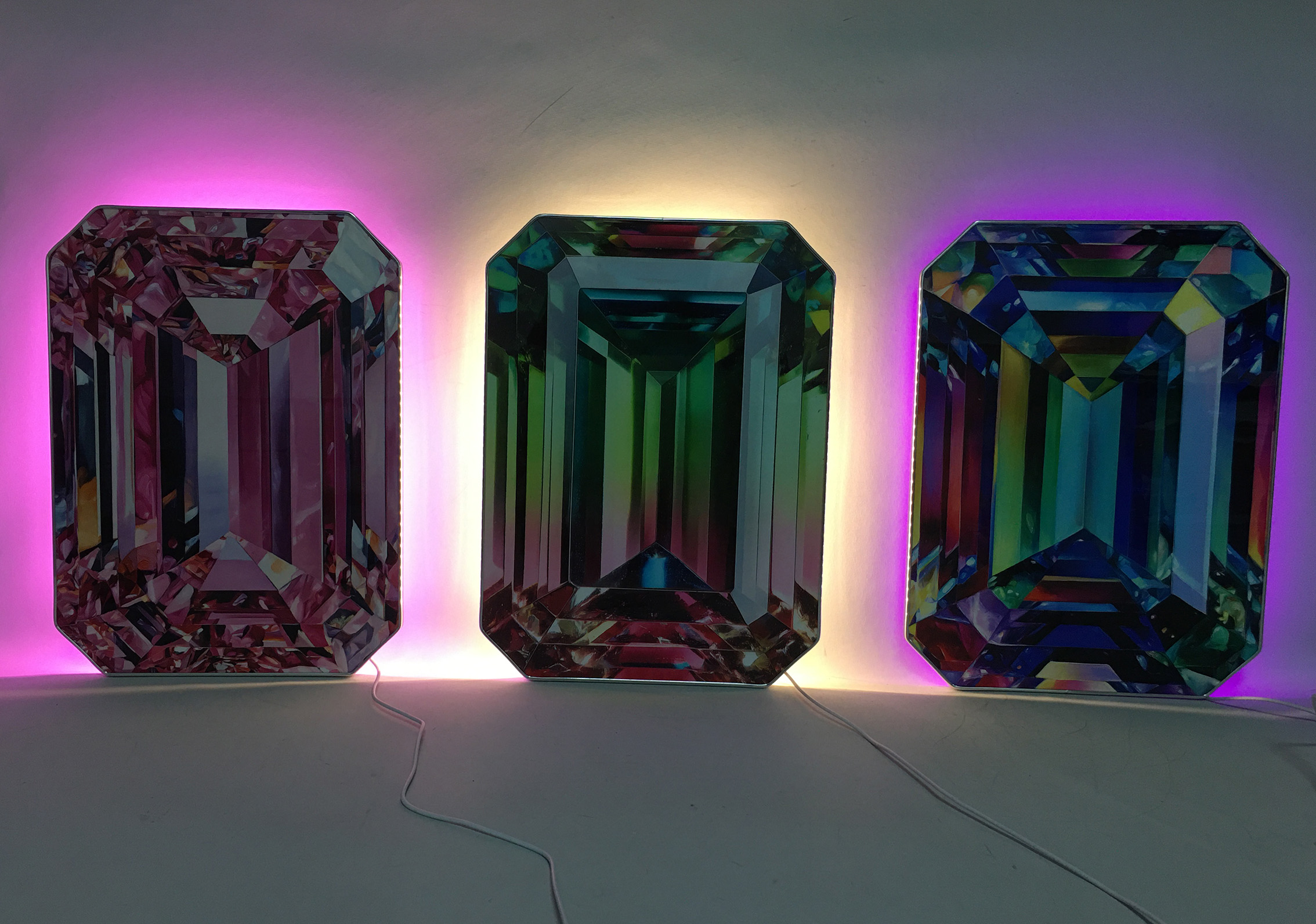 High-gloss lacquer embellished Neon Led Wall Art - Emerald-Cut Gem