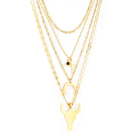 Ladies New Stainless Steel crossPendant cow head Multilayer Chain Necklace