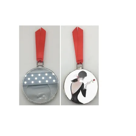 Metal Zinc Alloy with Gold Color Pocket Mirror Case with Ribbon
