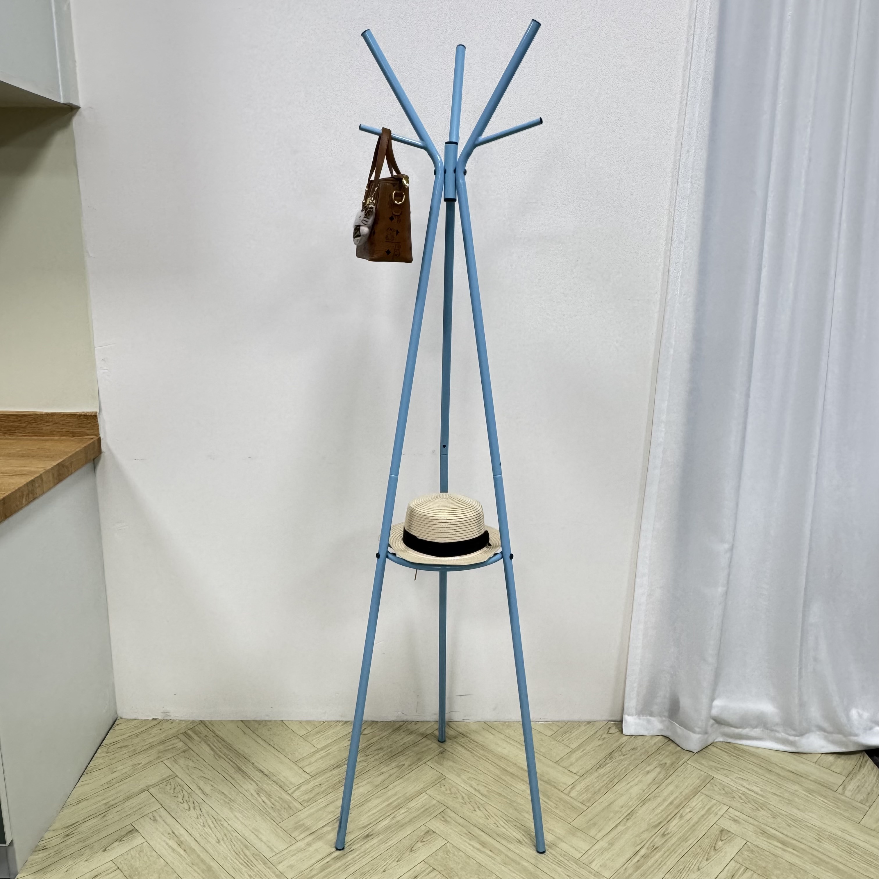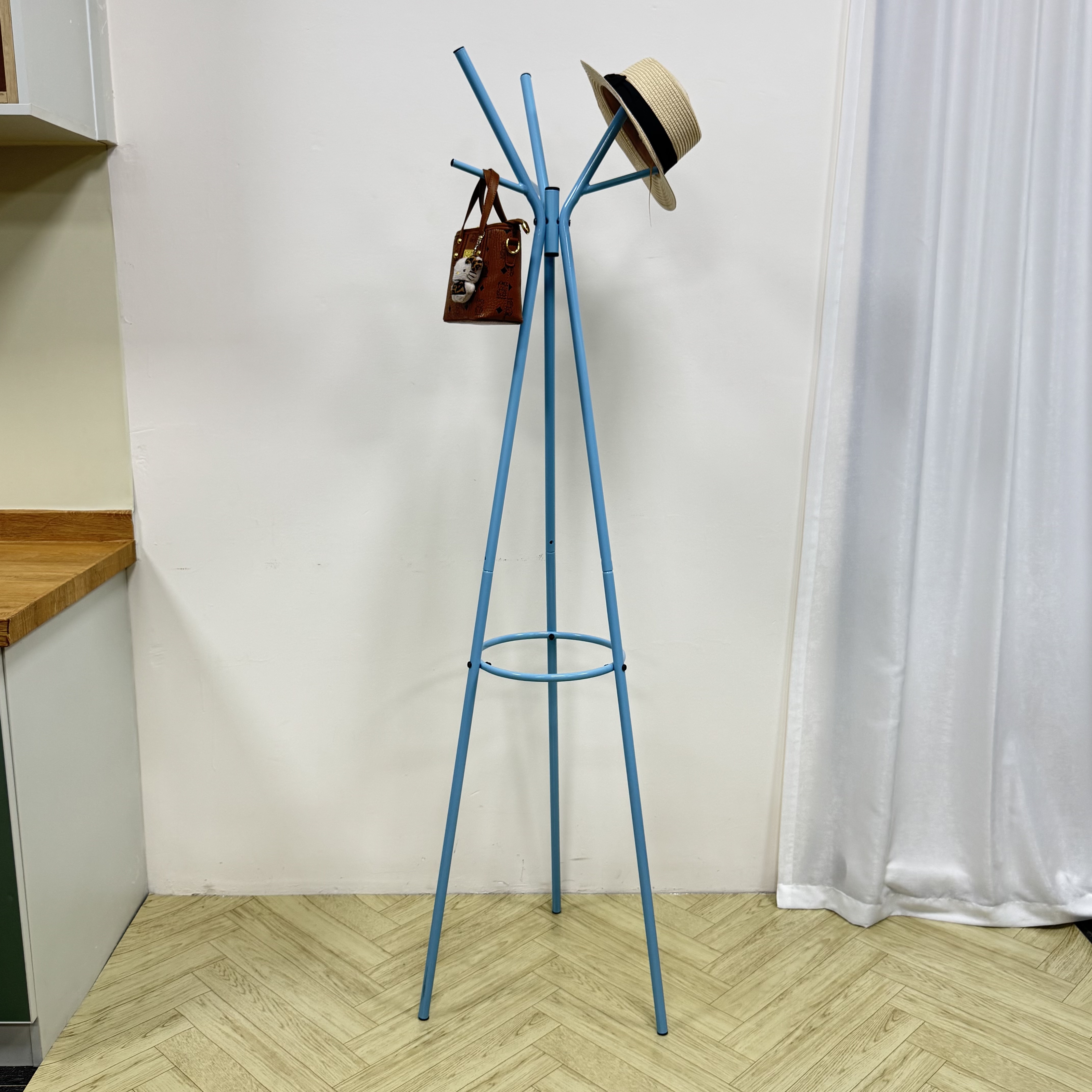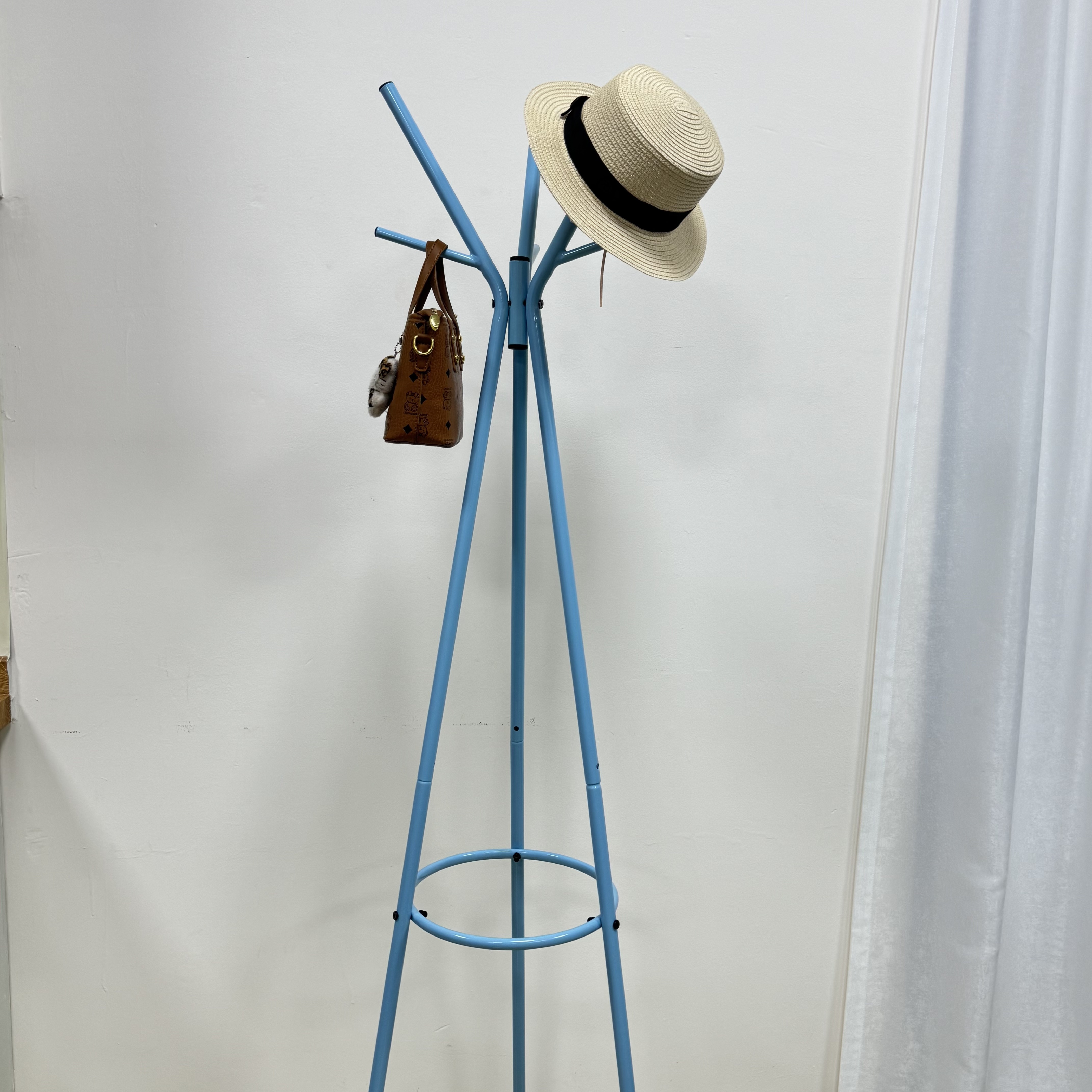 Sophisticated Design:Featuring a minimalist tripod silhouette and a vibrant turquoise finish, this coat rack is more than just storage—it's a piece of functional art. Perfect for modern apartments, minimalist offices, and boutique hotels.