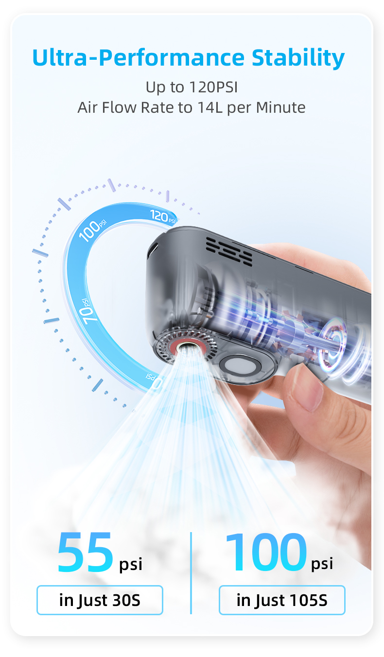 Smart & Safe Operation: Equipped with a high-precision air pressure sensor, the T05 automatically stops inflating once your preset pressure value is reached. This intelligent feature provides a safe and reliable experience, especially for users unfamiliar with pressure settings.