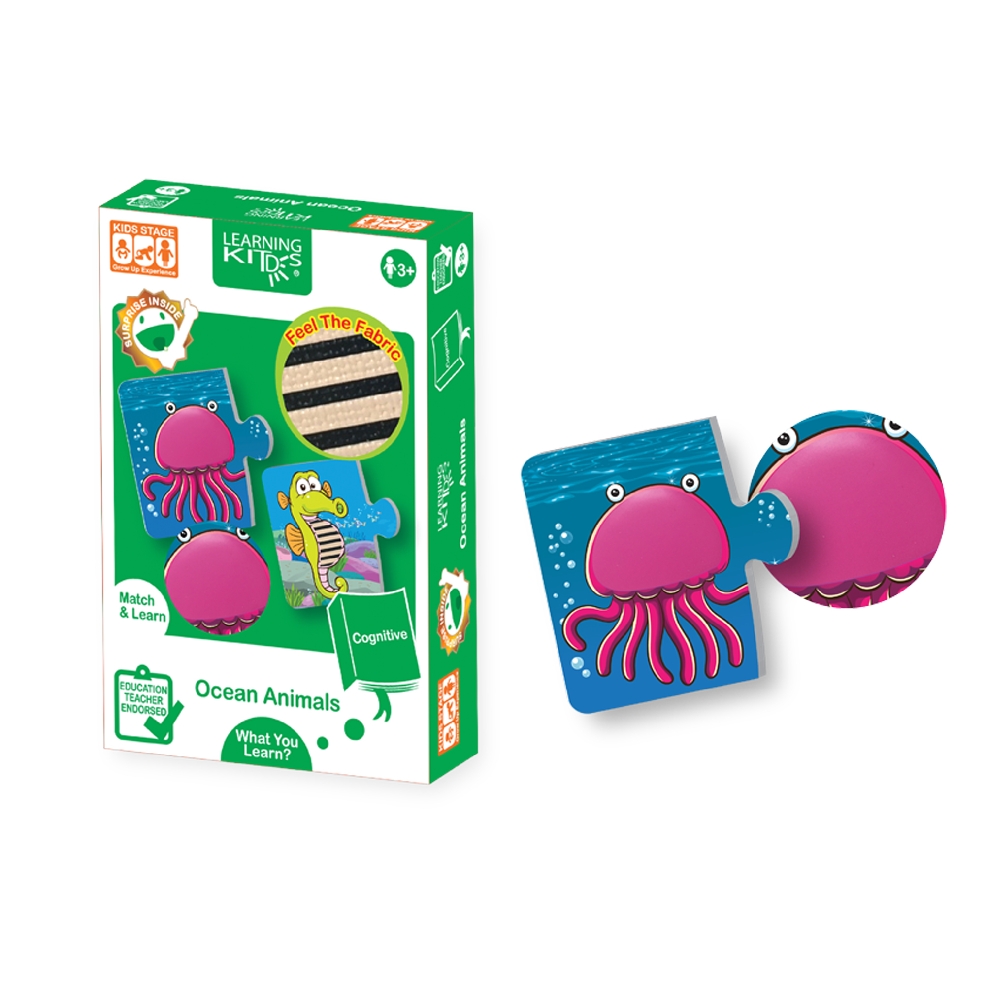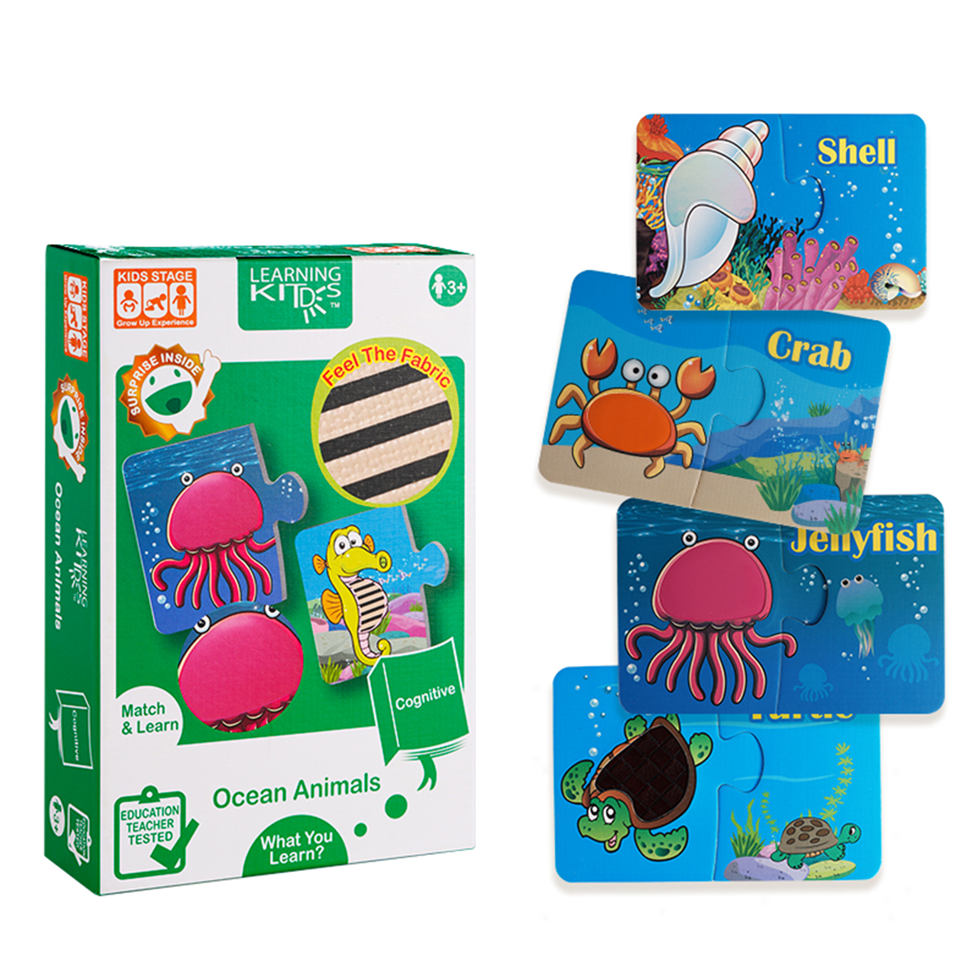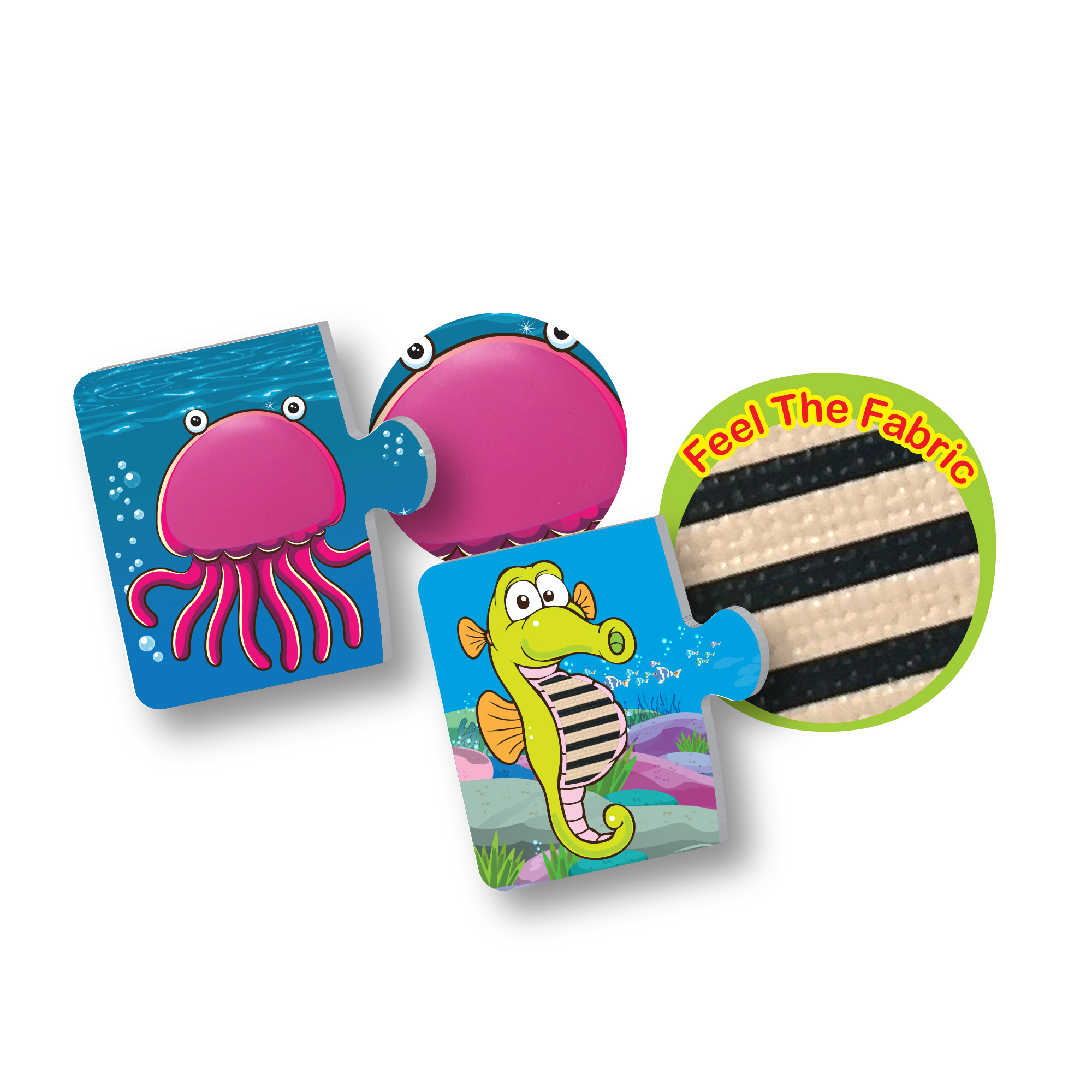 Some animals are in the ocean. Find them out and match them with correct fabric textured pieces.