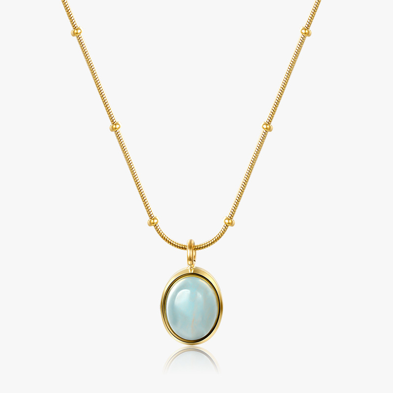 Ocean Blue Oval Aquamarine Titanium Steel Pendant Necklace Titanium Steel