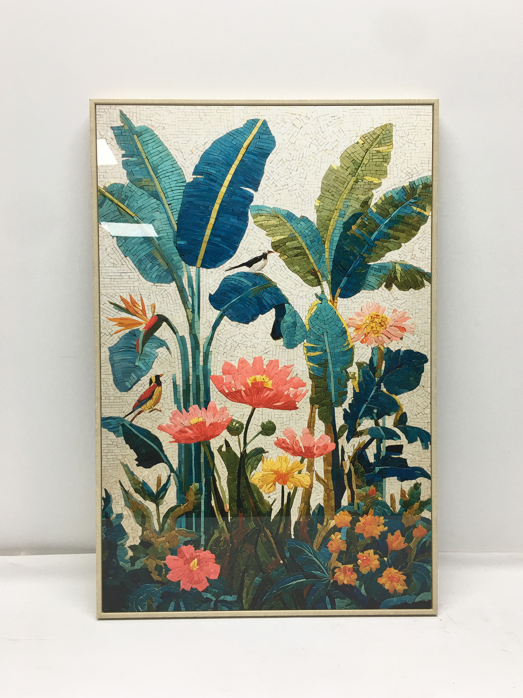 High Gloss Embellished Outdoor Frame Art -Tropical Mosaic Garden Wall Art