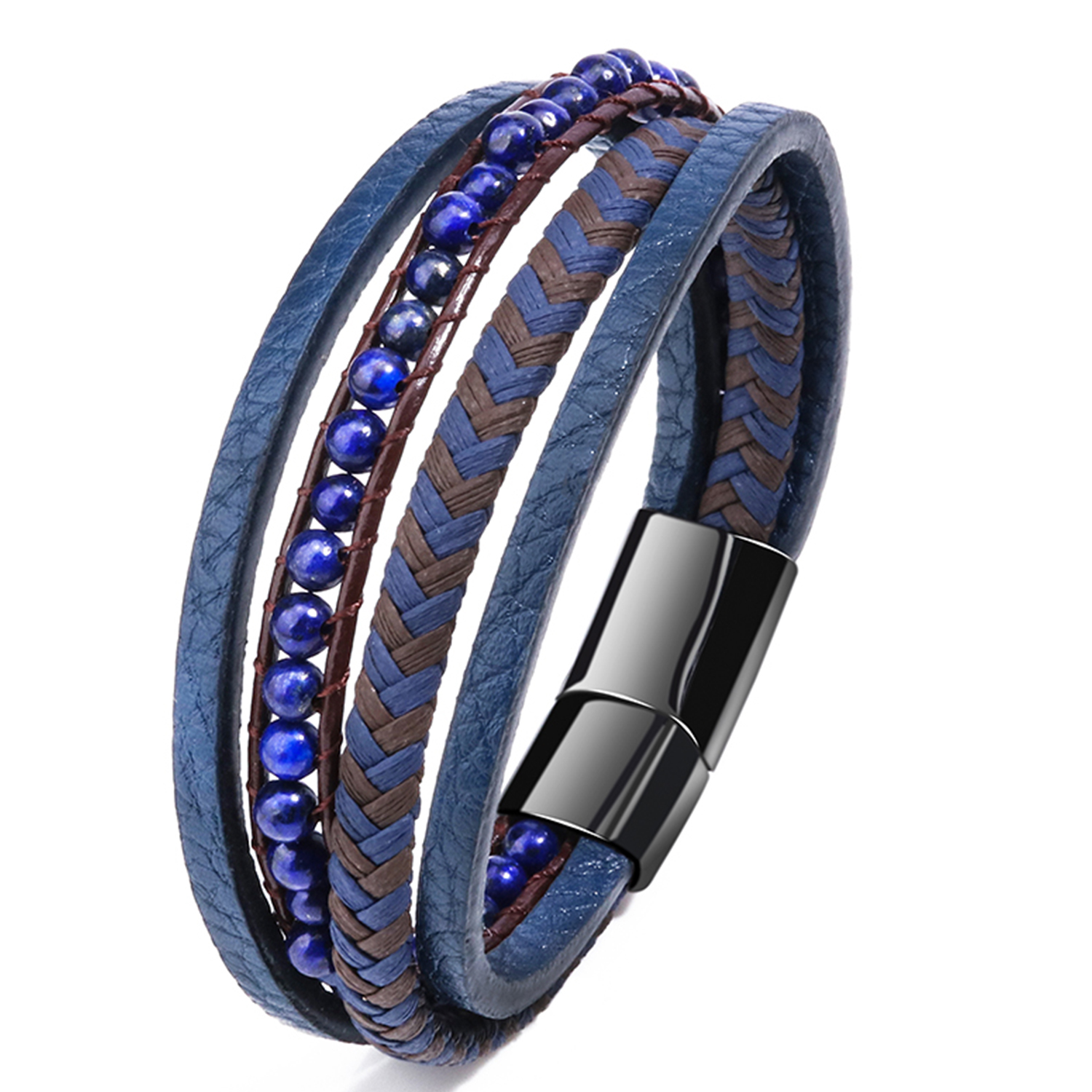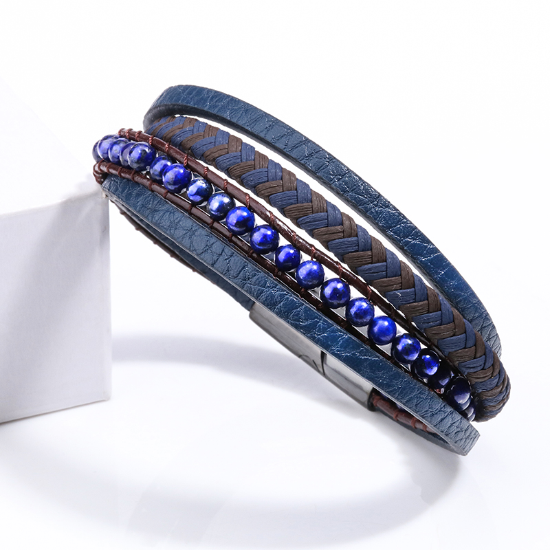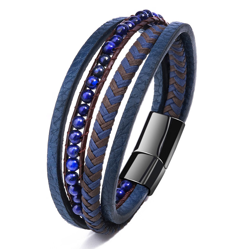 private logo Personalized Gift Wide Men Braided Genuine Multi layerReal Leather Bracelet