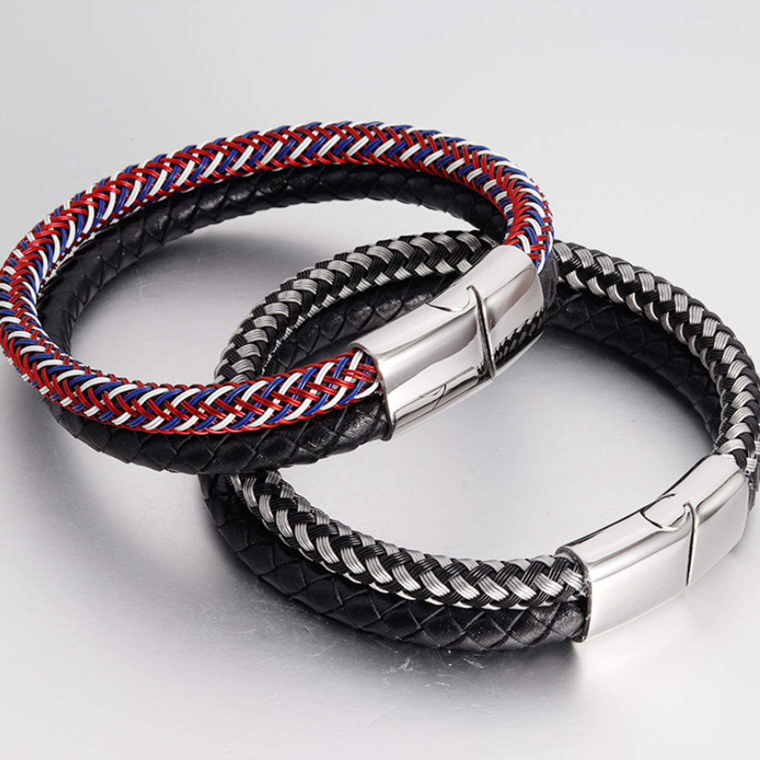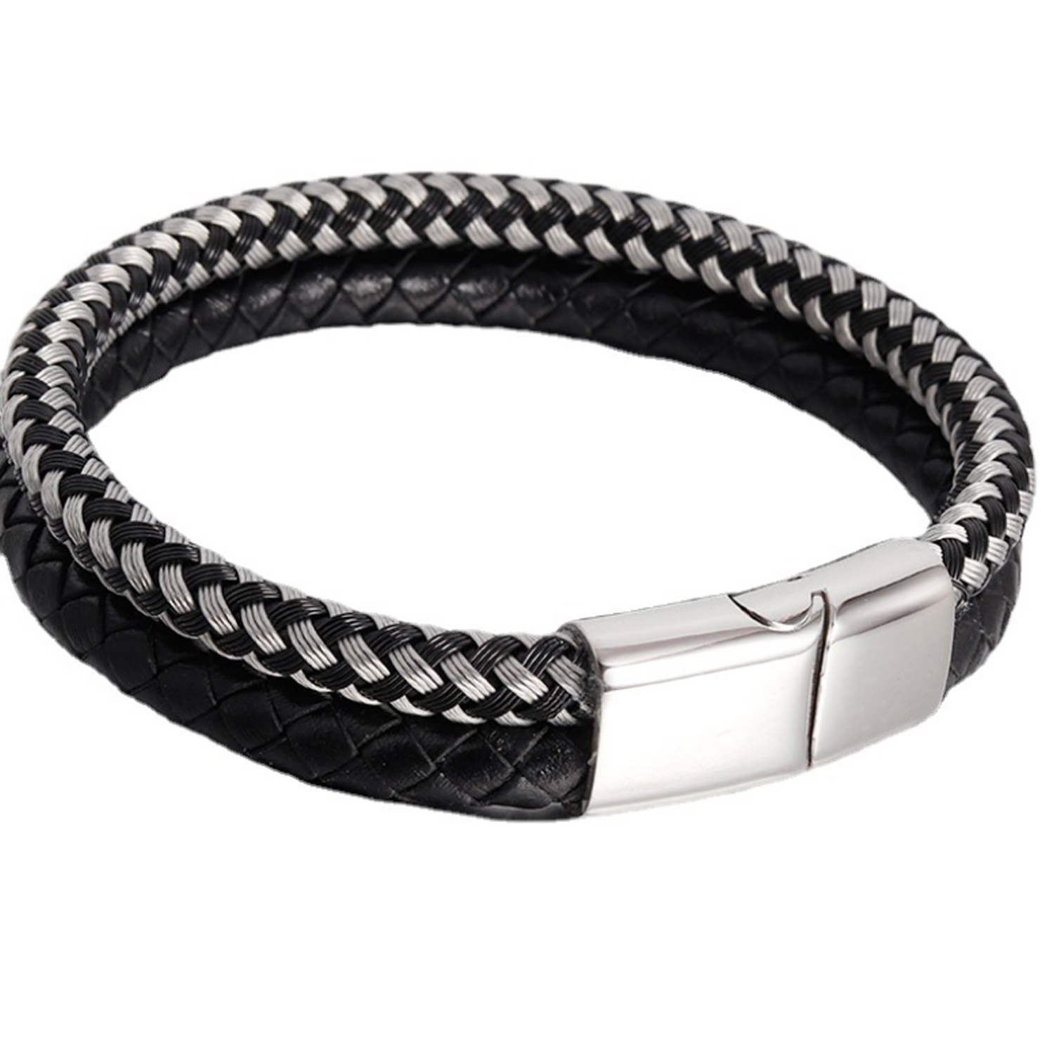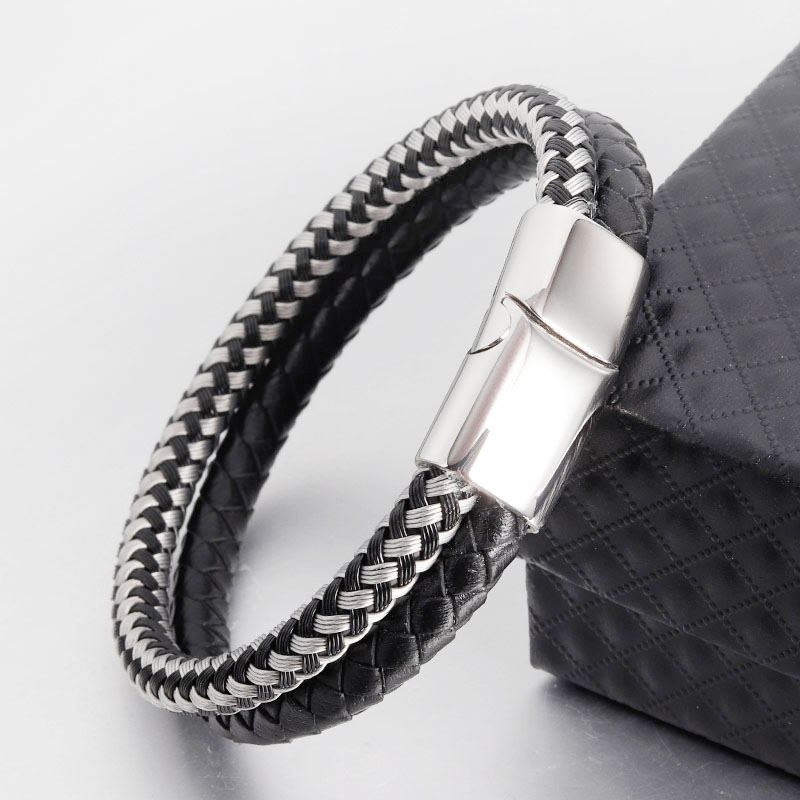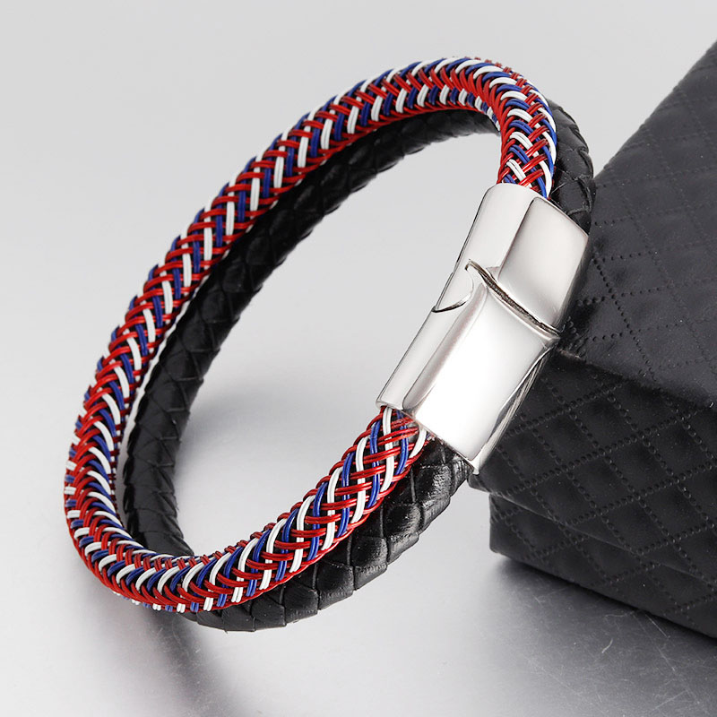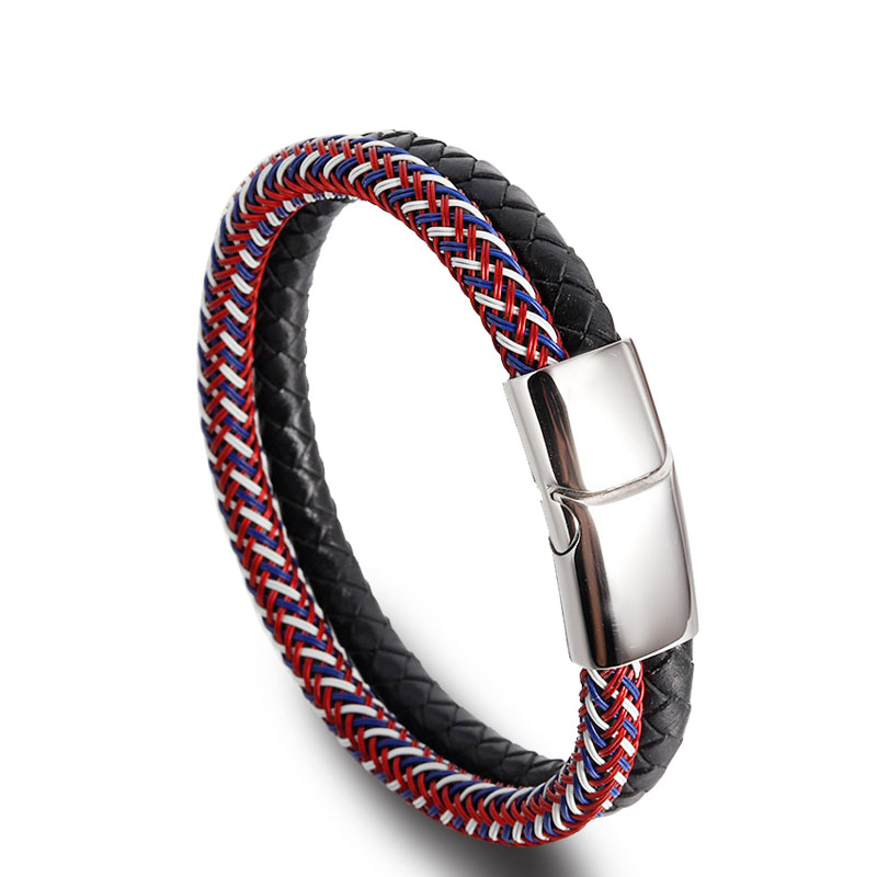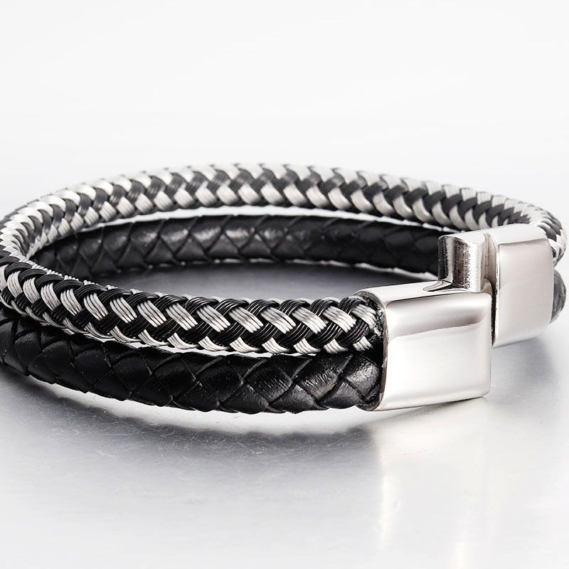 private logo Personalized Gift Wide Men Braided Genuine Multi layerReal Leather Bracelet