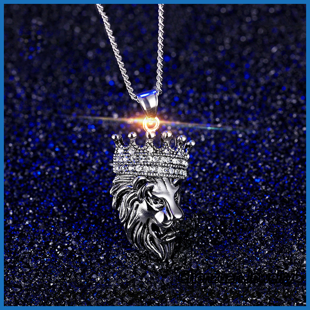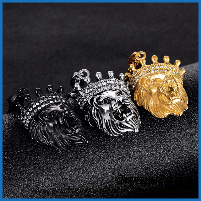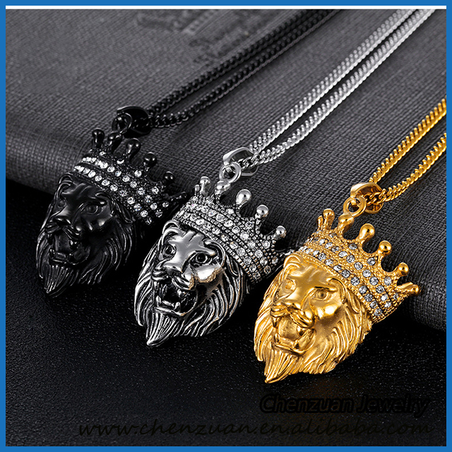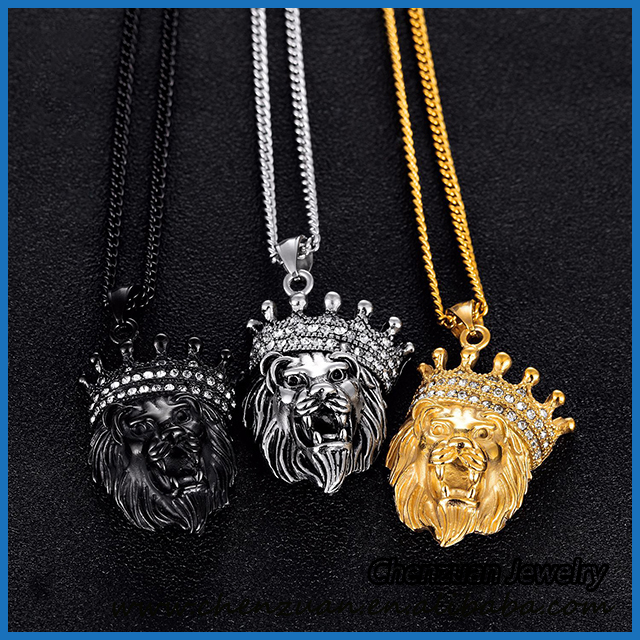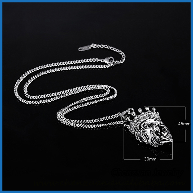 Punk Men'S Stainless Steel Crown Lion Head Shape Pendant Necklace