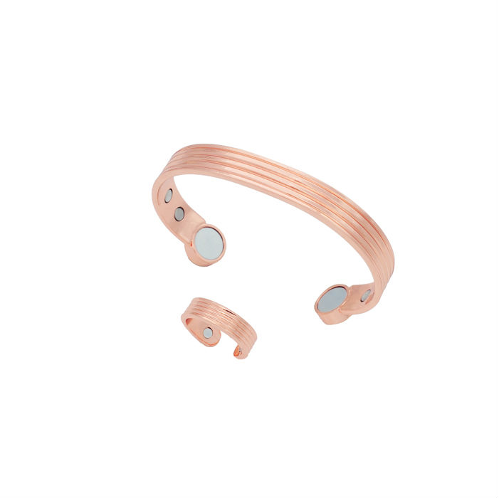 This bracelet is the perfect, stylish solution to pain management. Designed with pure copper and rare earth magnets, it combines powerful, natural, noninvasive healing and practicality effortlessly. Created with style and beauty in mind, this therapeutic bracelet will look gorgeous combined with all other accessories, in a stack of bangles, or as a standout, statement piece. The copper design makes for an on-trend, rose gold look.