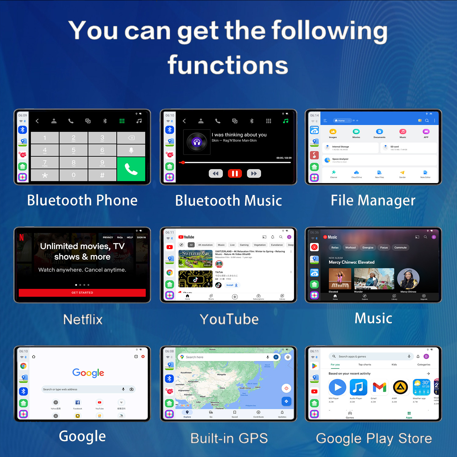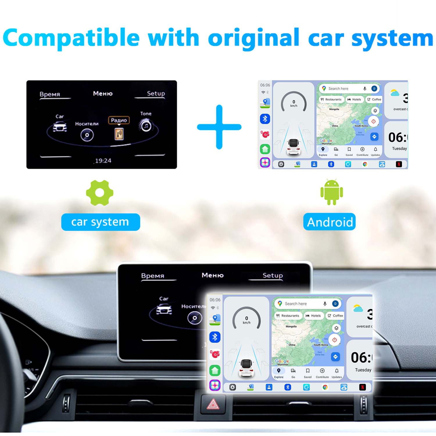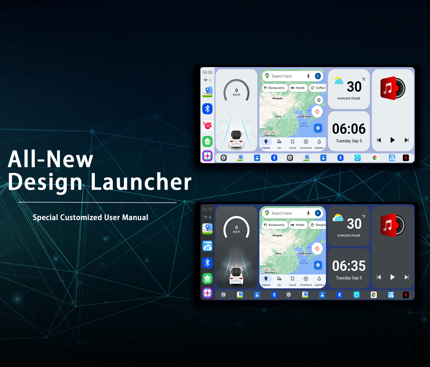 Qualcomm SM6115 is a solution with four A73 and 4 A53 cores, it is with extremely high cost performance, can support wireless CarPlay and Android Auto, and can allow you enjoy Android 13+ version system with full apps from Google Playstore.